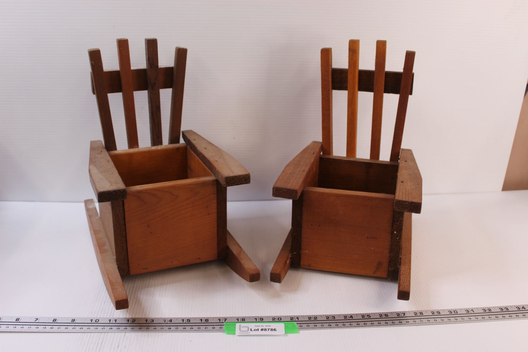 (2) Wood Rocking Chair Planters - 14" x 14" x 9"