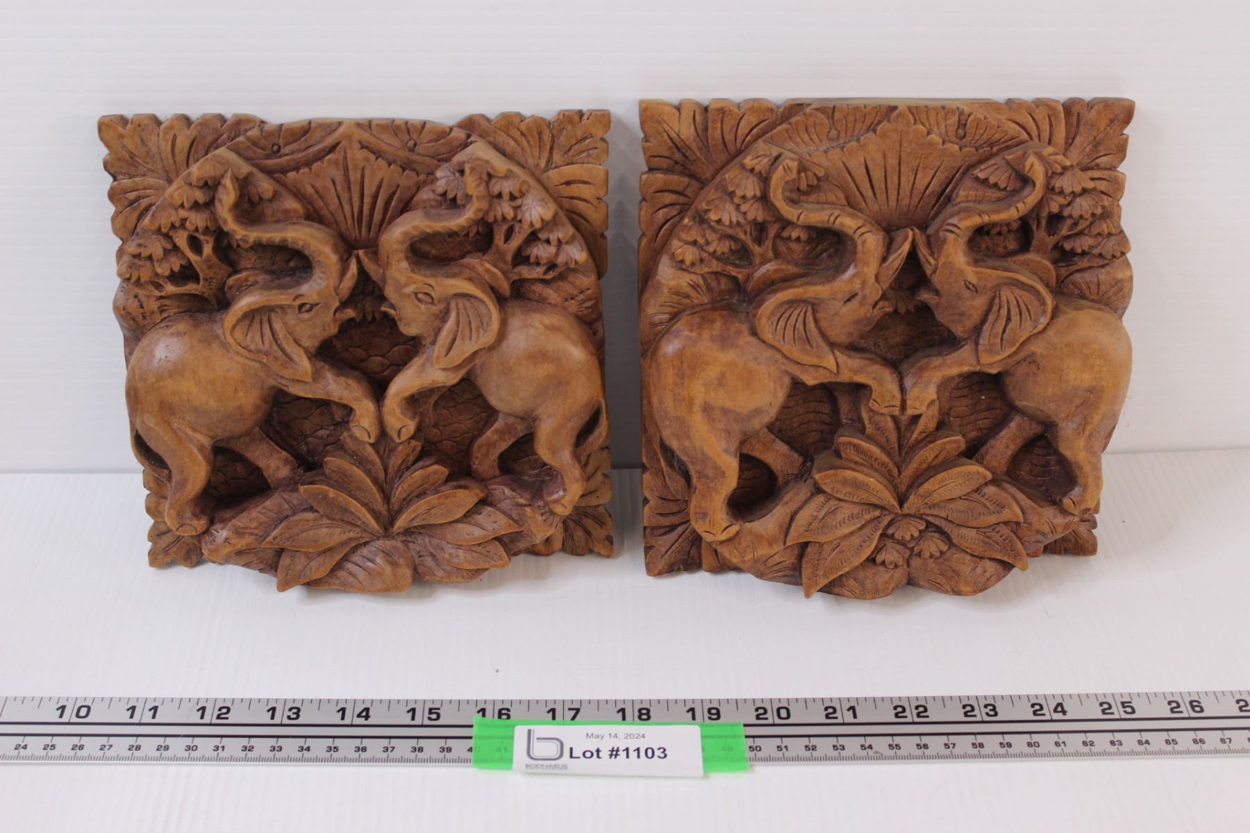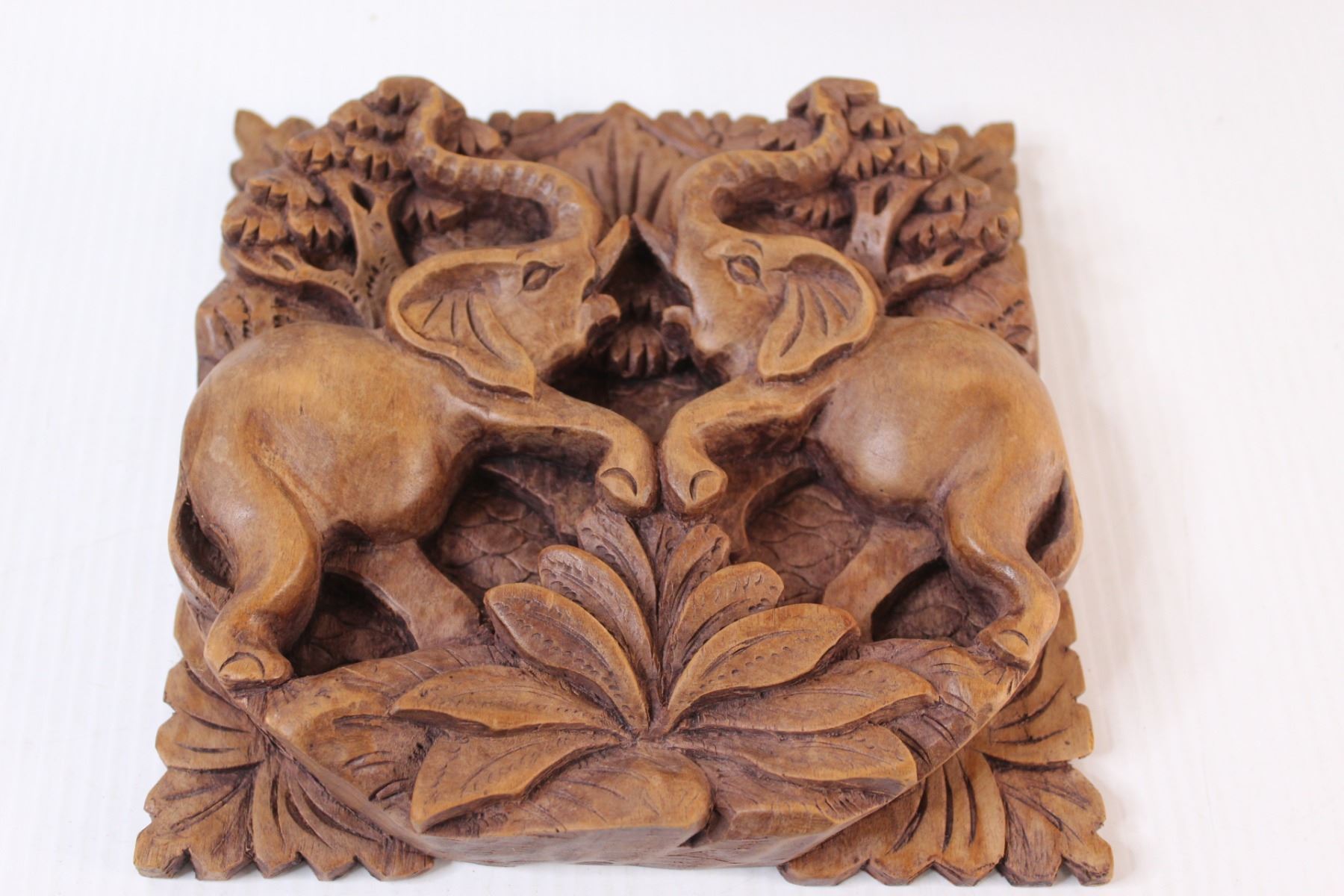 (2) Wooden Carved Elephant Wall Plaques