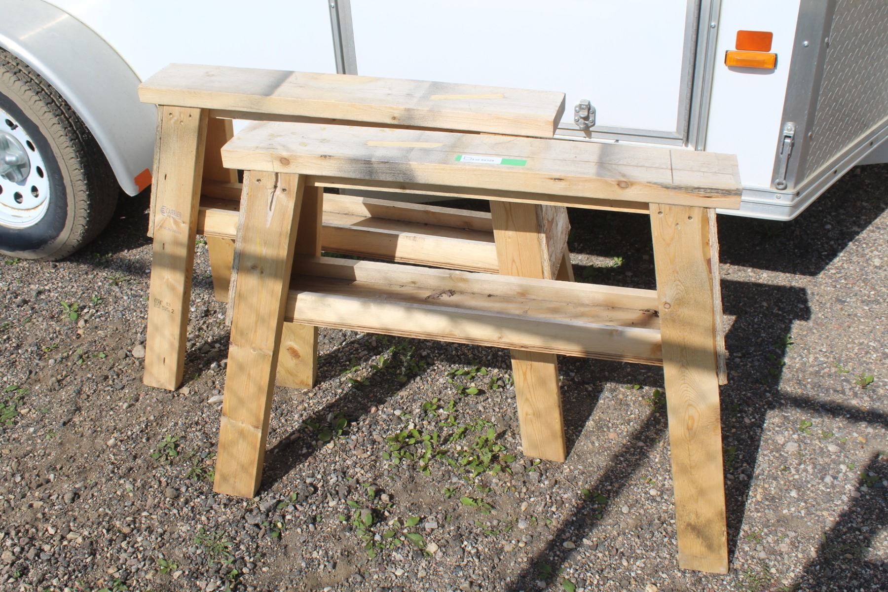 **(2) Wooden Saw Horses (34"w x 18" h - 6" board on top)
