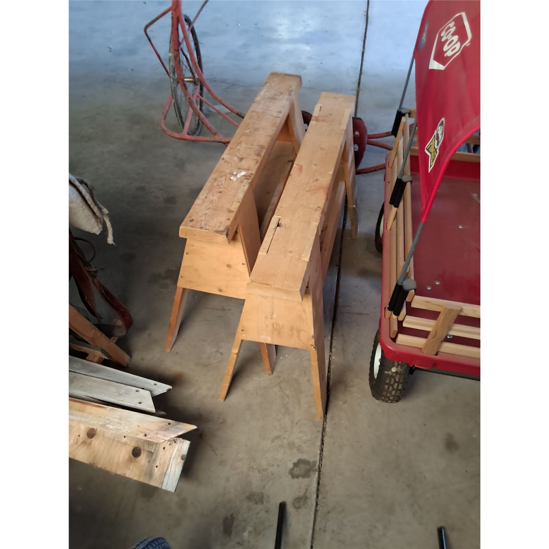 (2) Wooden Saw Horses - 37" L x 15.5" W x 23.5" T