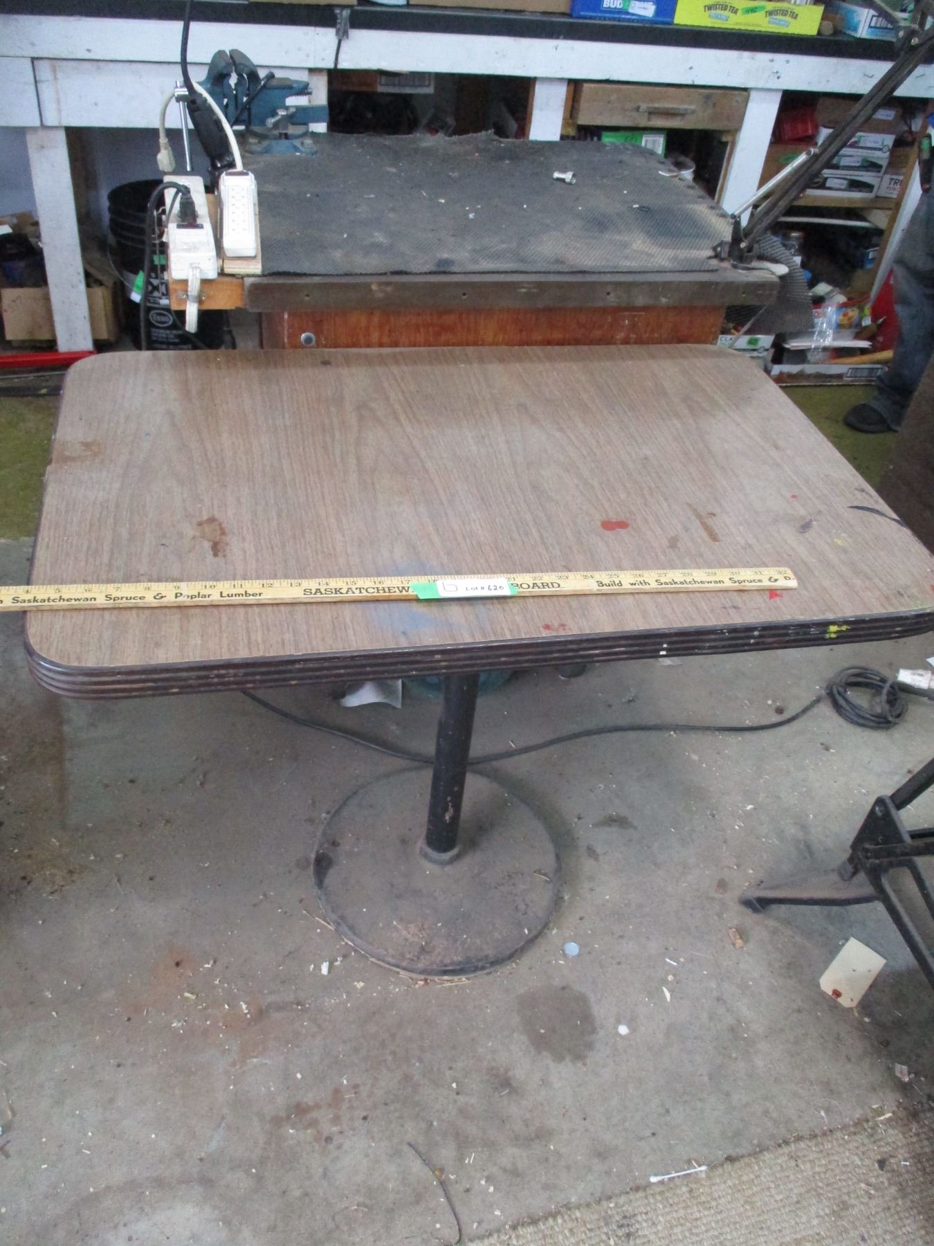 (2) Work Table Stands (1 - Iron Top with Vise, Casters, (2) Work Lights - 30 x 24", Other is 36 x 23")