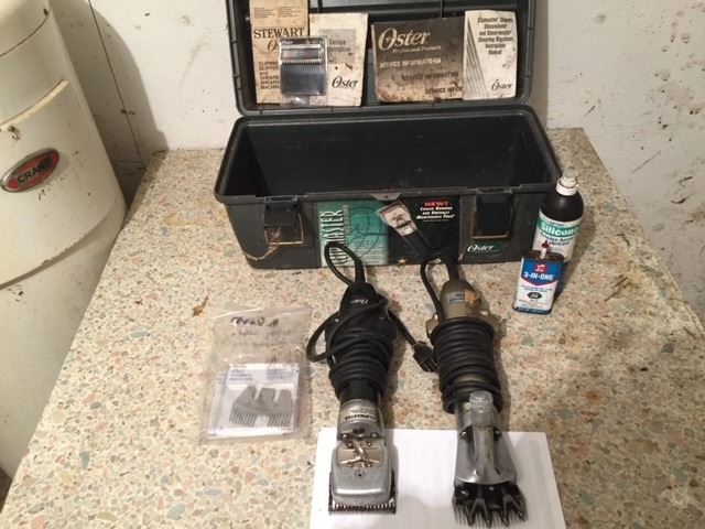 Two Oster livestock clippers -One is Clipmaster, other is Stewart Shearmaster (case included)