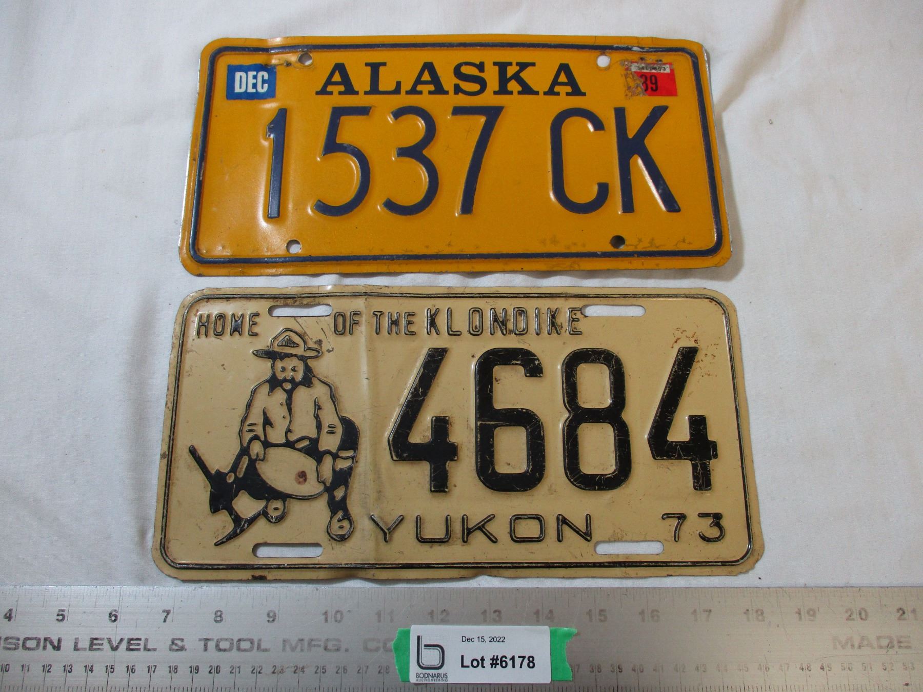 (2) Yukon 1973 + Alaska 1989 License Plates