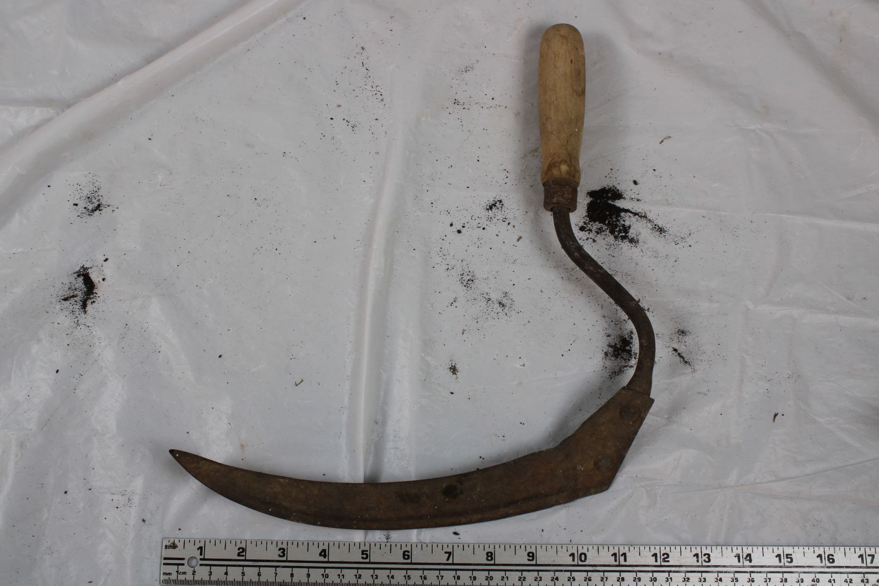 2 antique hand scythes and saw