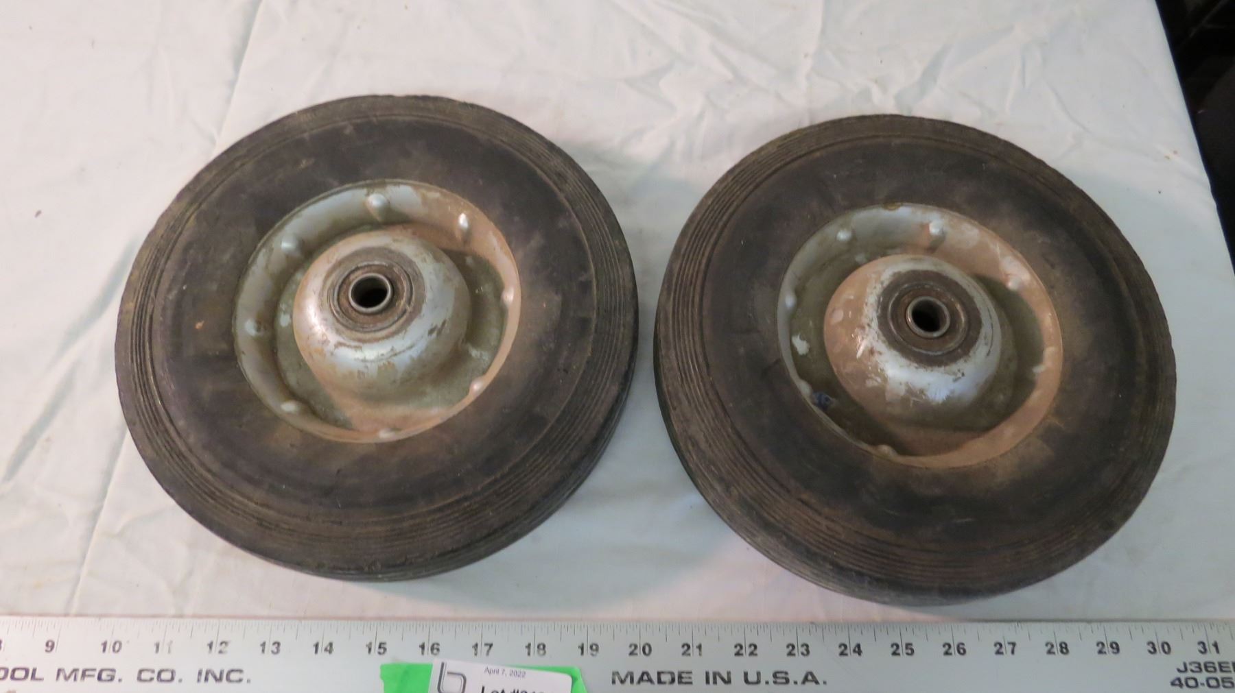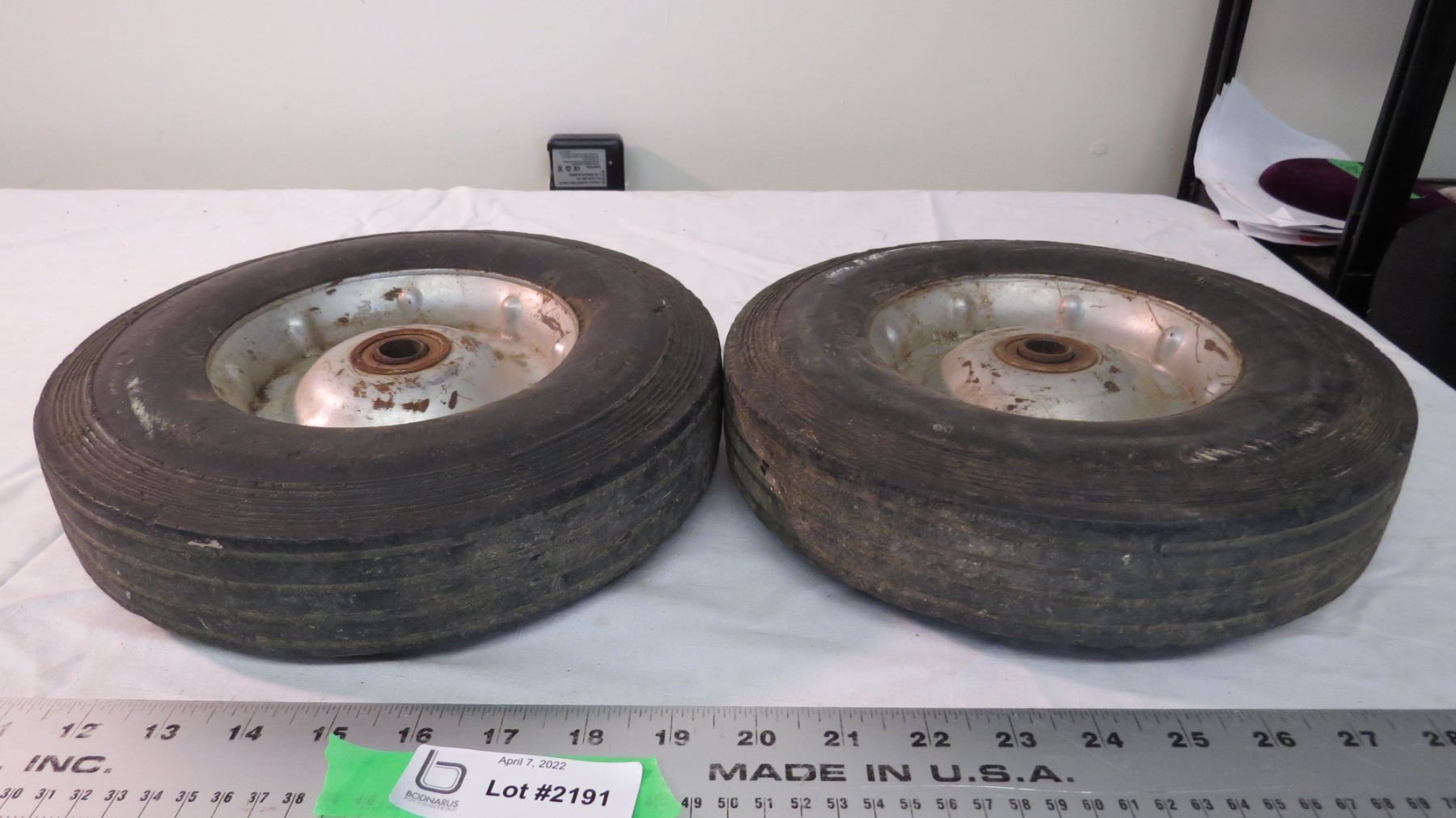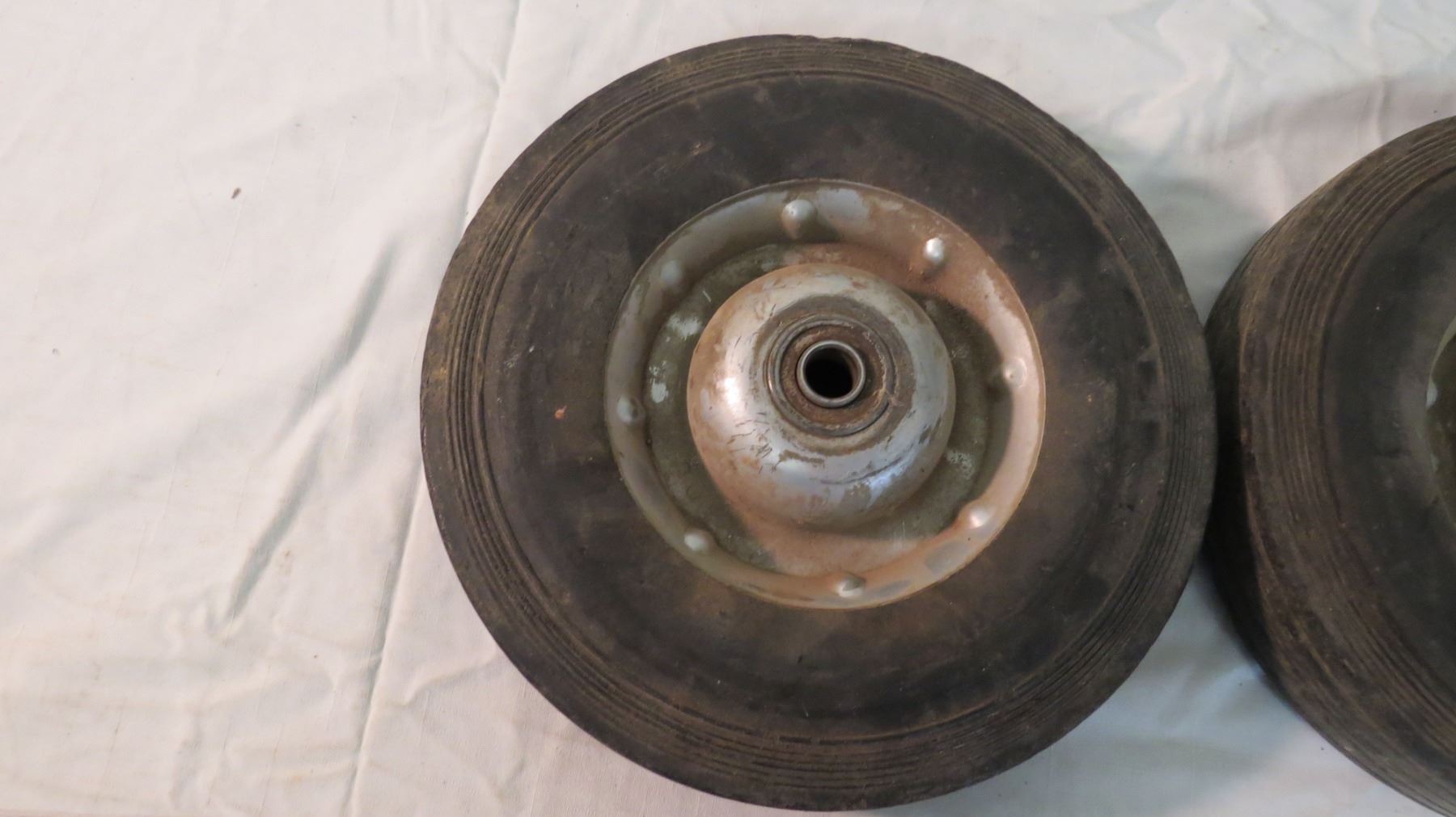 (2) replacement tires + rims for 2 wheel cart