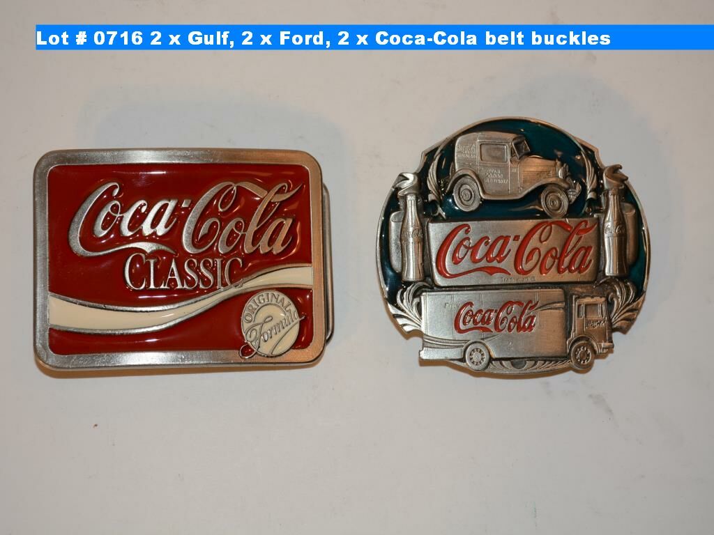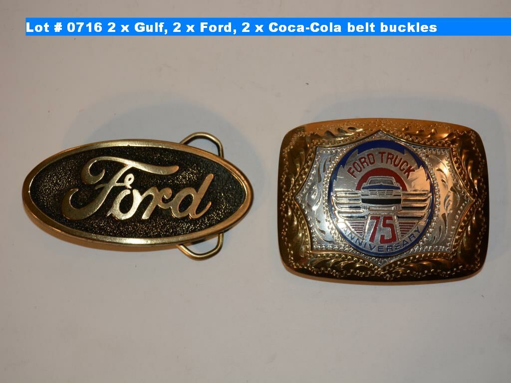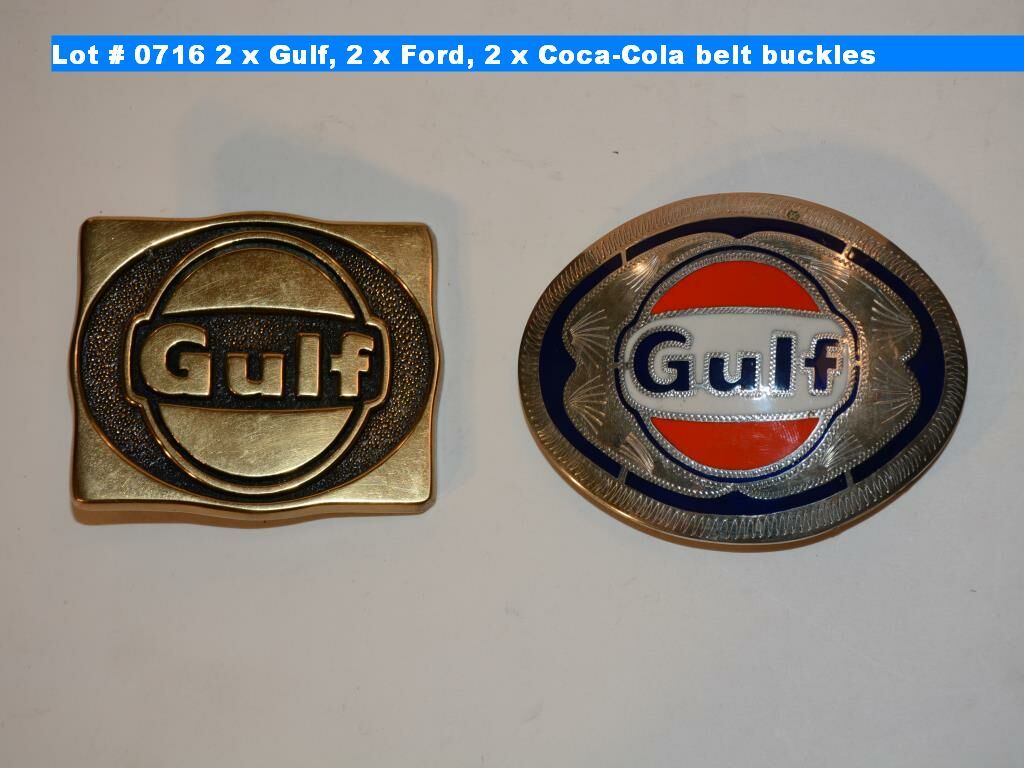 2 x Gulf, 2 x Ford, 2 x Coca-Cola belt buckles