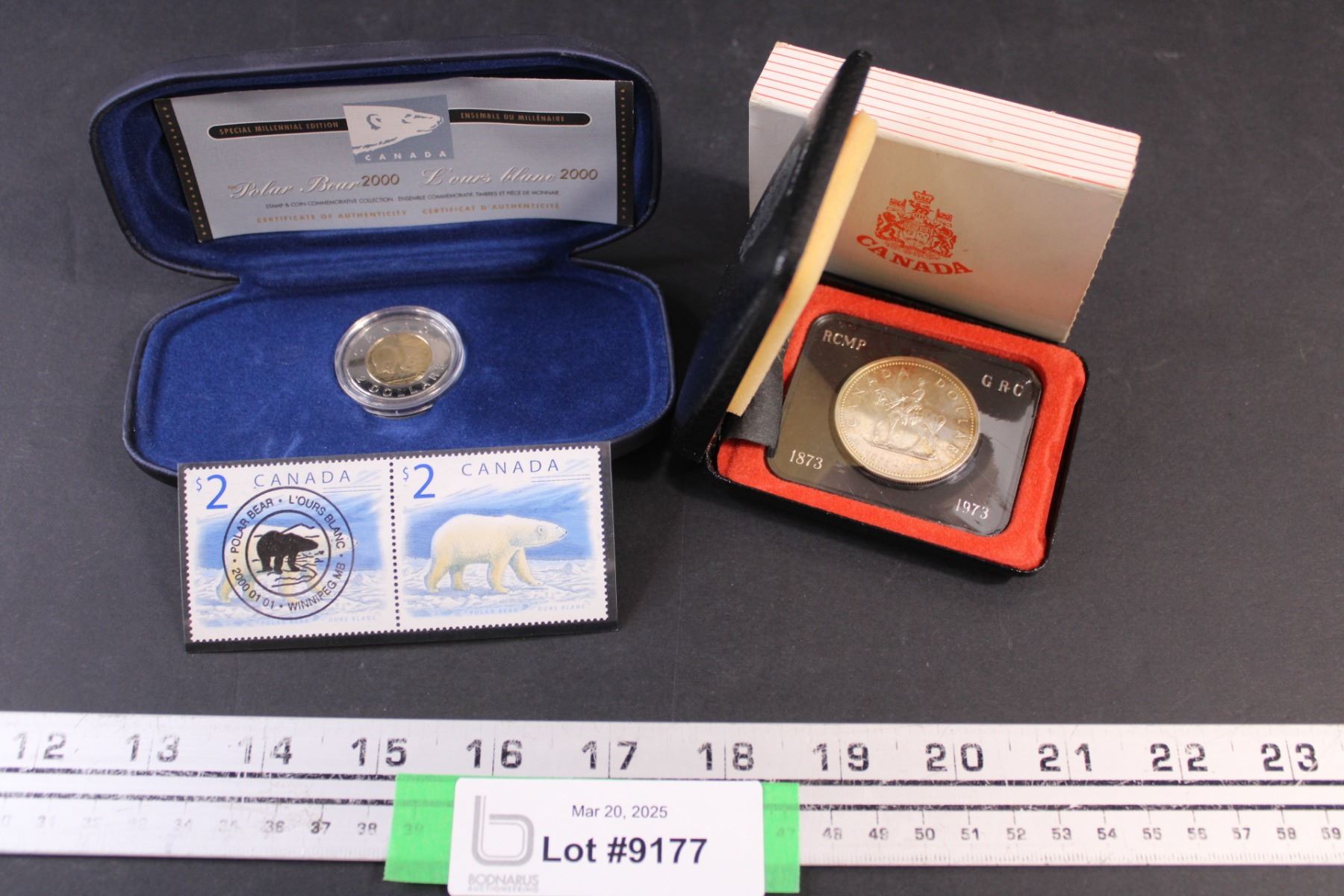 2000 RCM Toonie and Stamp Set and 1873-1973 RCMP Silver Dollar