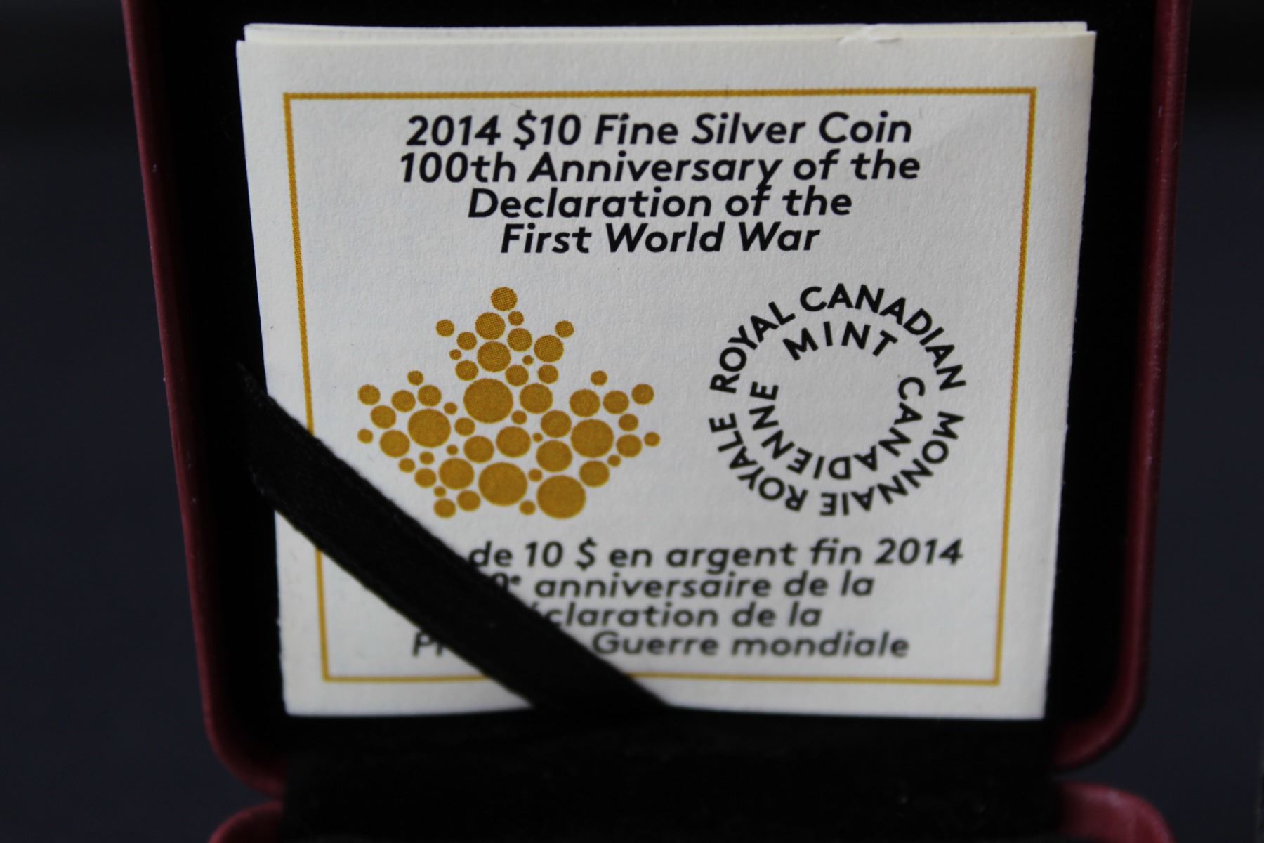 ^2014 Royal Canadian Mint 100th Anniversary Of The Declaration Of War $10 Fine Silver Coin