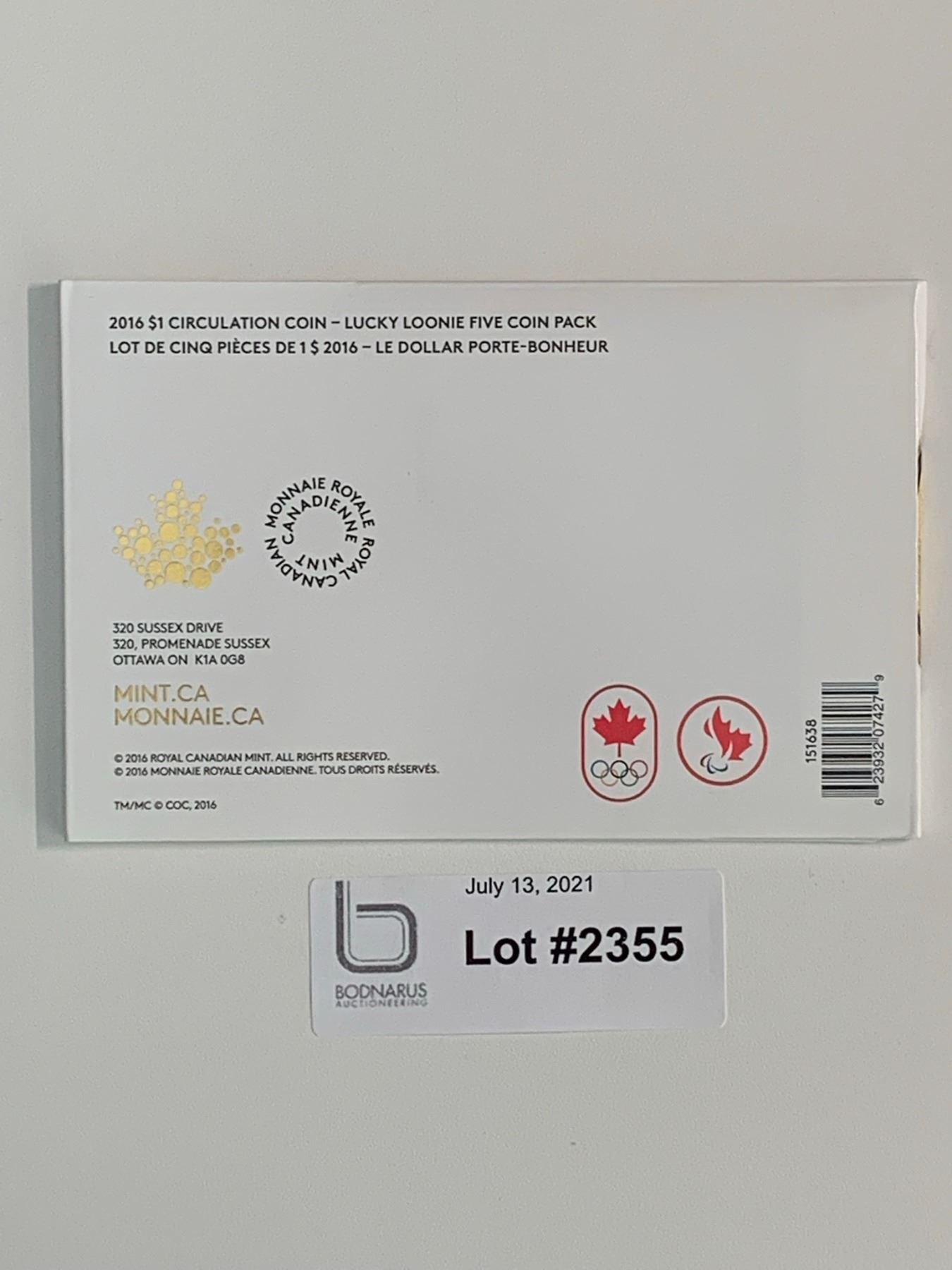 2016 Lucky Loonie 5 loonies
