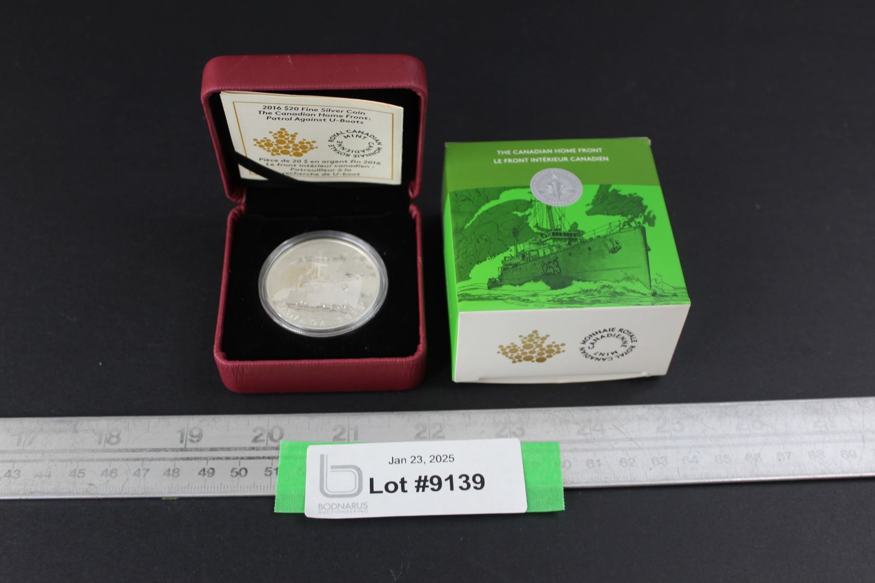 ^2016 Royal Canadian Mint The Canadian Homefront Patrol Against U-Boats $20 Dollar Fine Silver Coin
