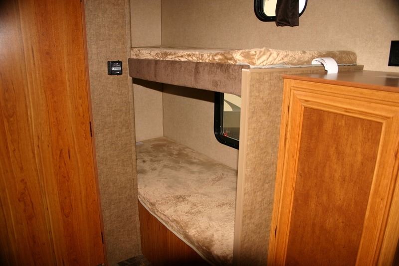 Dimensions Dinette: 38 x 72 | Queen Bed: 60 x 74 | Bunk Beds: 30 x 76