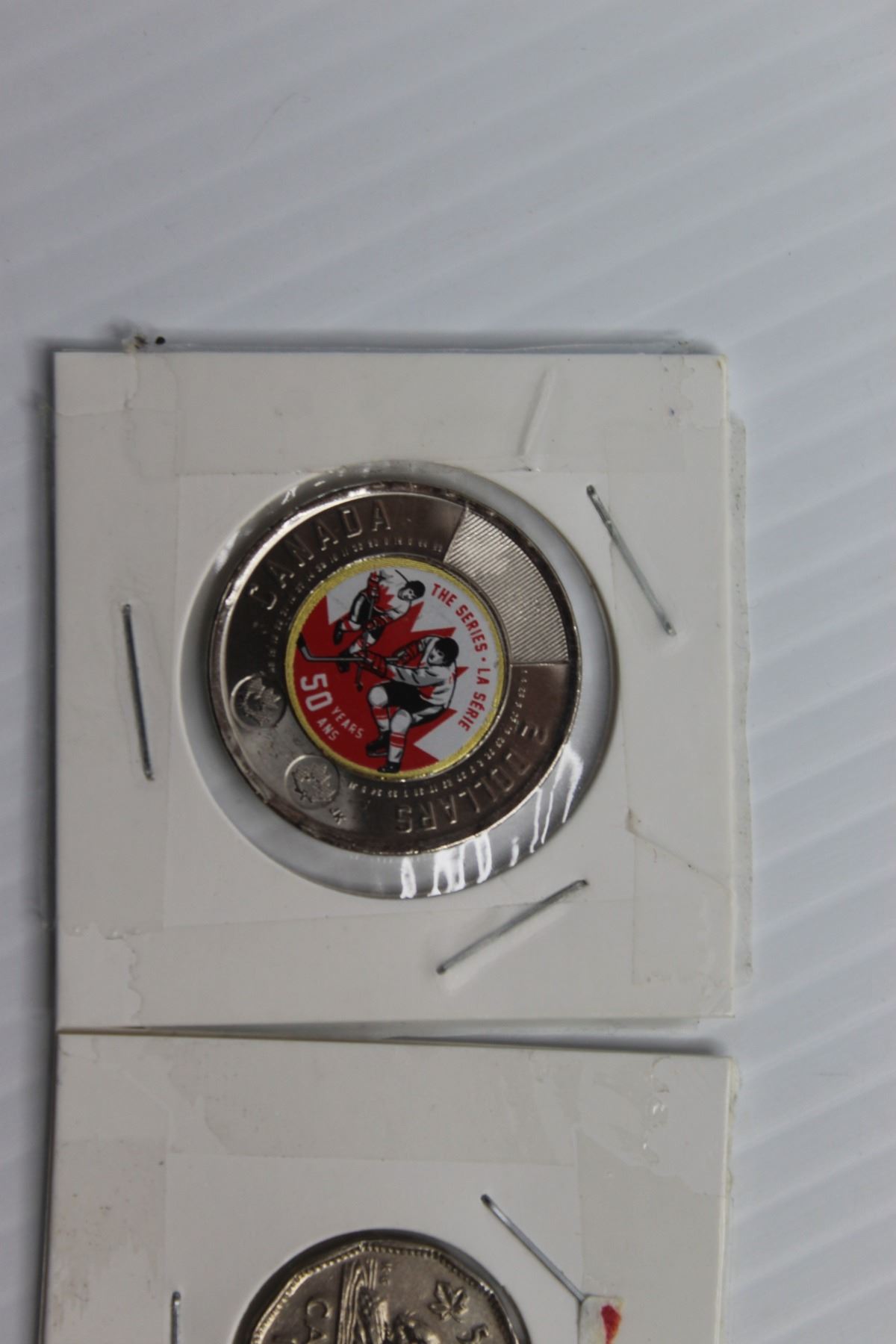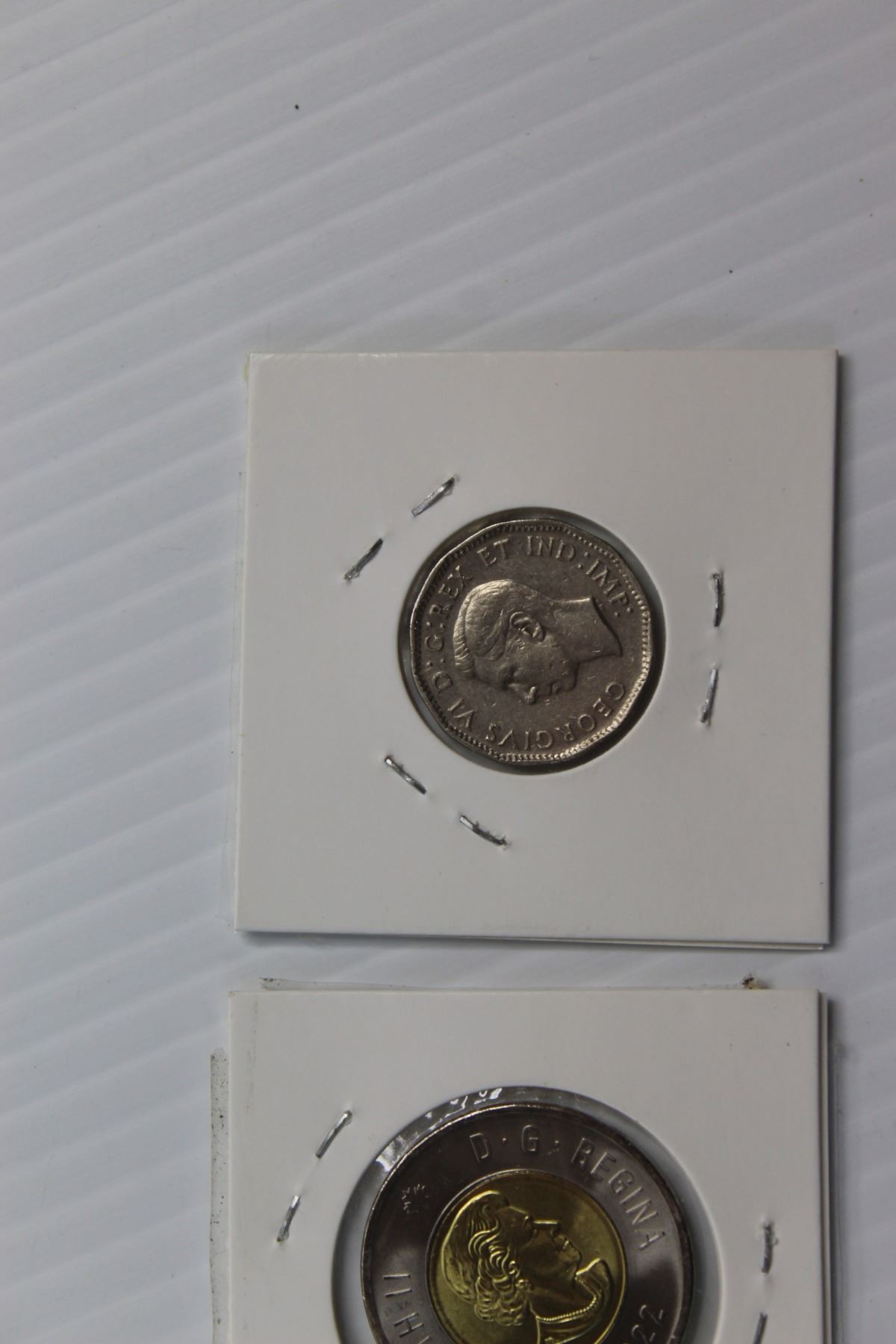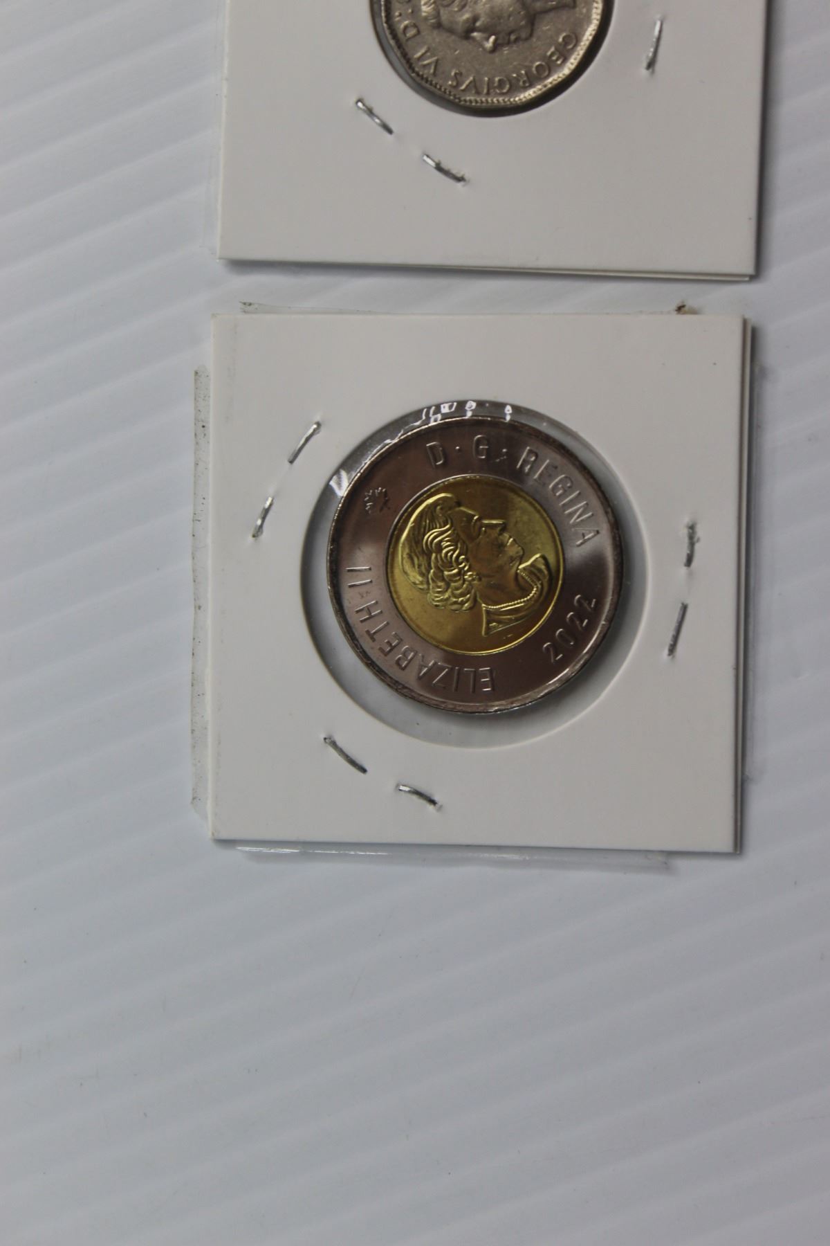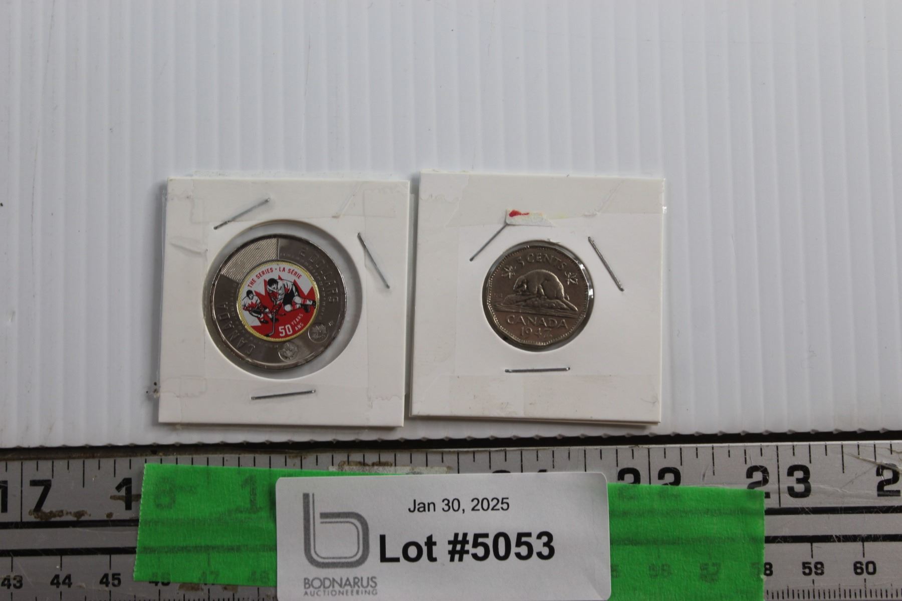 ^2022 Canada Toonie Summit Hockey Series and Antique Maple Leaf 1947 Canadian 5 Cent Coins