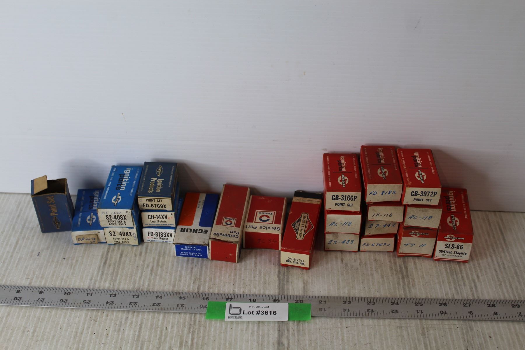 (23) AC Delco, Echlin, Brigg's & Stratton, Standard Parts - Carburetor, Points, Switch, Misc.