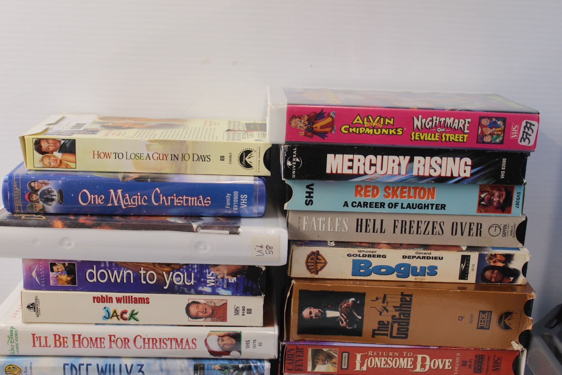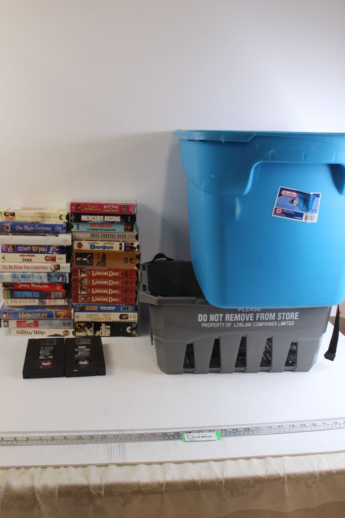 *(23) VHS Tapes, Tote Without Lid, Basket
