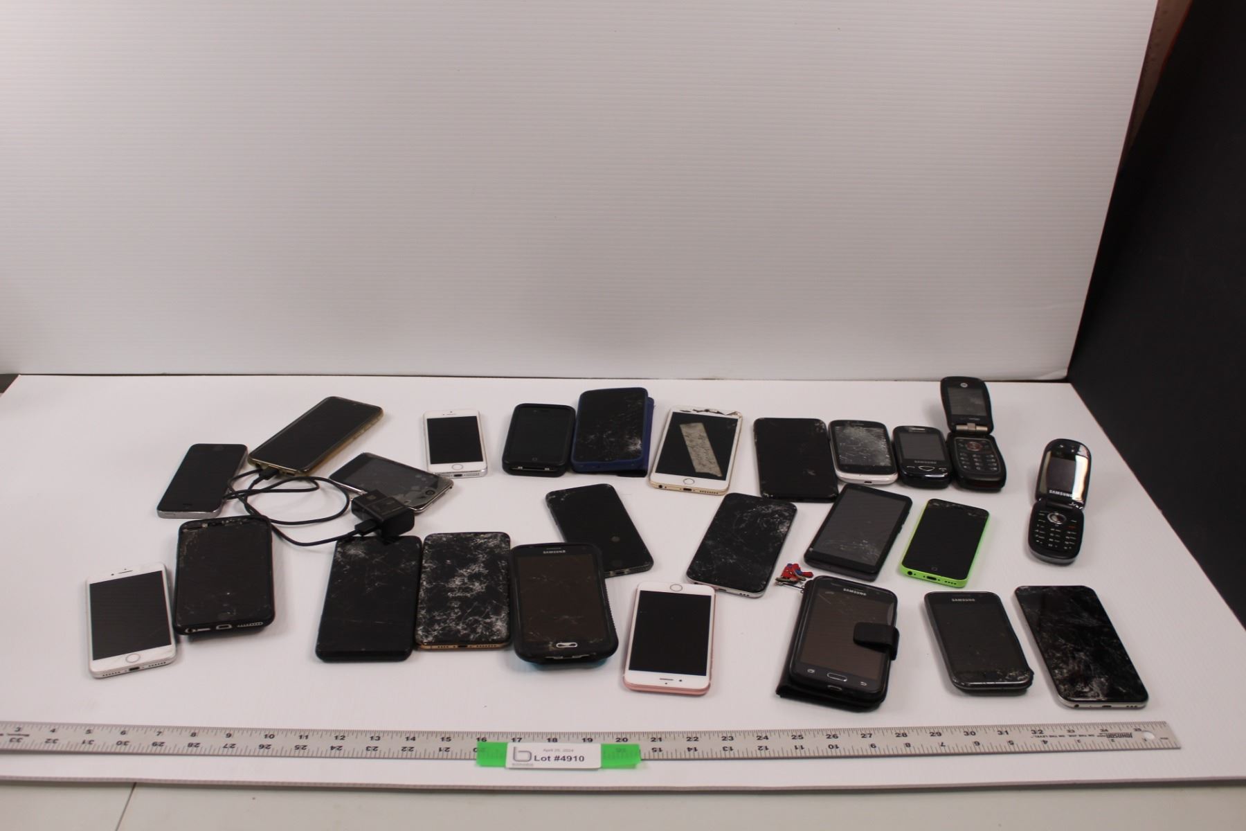 (25) Used Broken Cell Phones & Cases - iPhone, LTE< Samsung, LG, Motorola, Huawei
