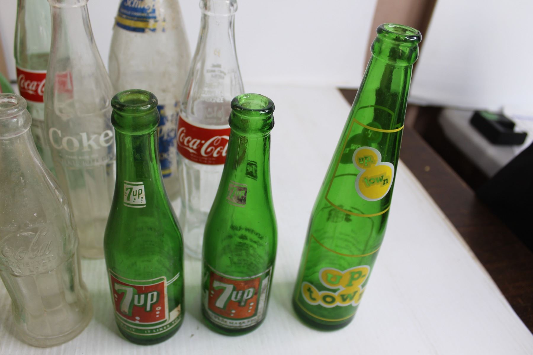 (28) Glass Bottles - Coca-Cola, 7-Up, Schweppes, Up-Town