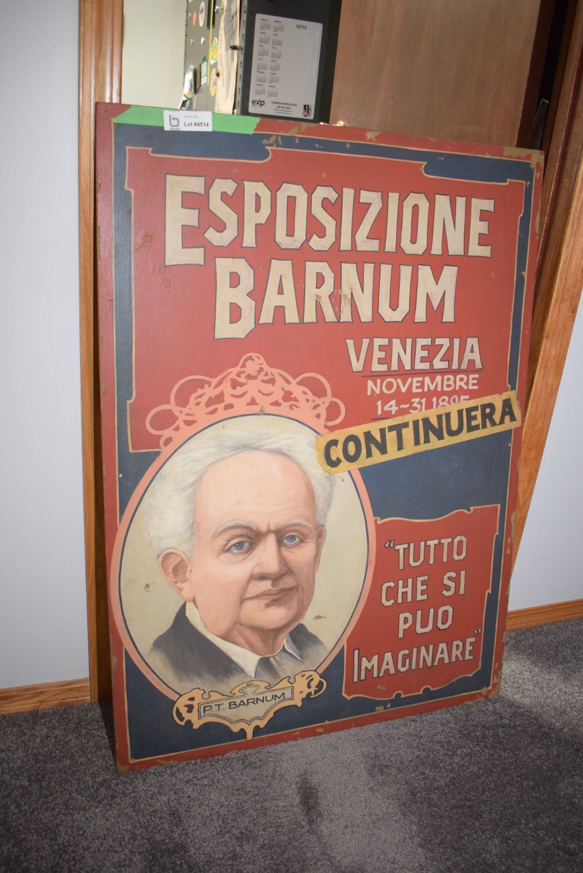 29x40" 1988 Bender Painted Wooden Sign of 1895 Barnum Play