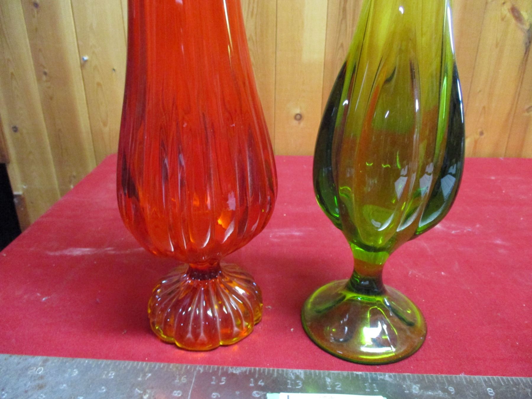 2X THE BID PRICE - Orange + Green vases - 21" tall + 23" tall