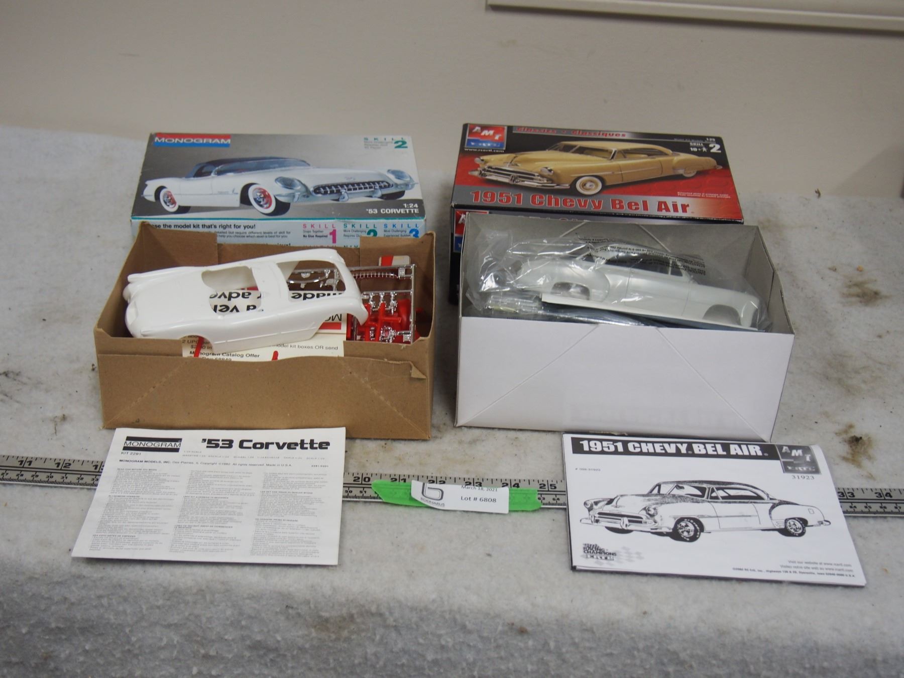 2X THE MONEY - 1951 Chev Bel Air, 1953 Corvette Unassembled Plastic Model Kits with Instructions