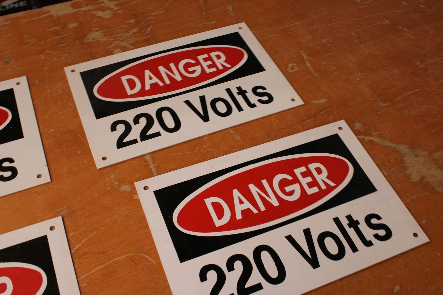 (2X THE MONEY) Danger 220 Volts Signs 12" x 8"
