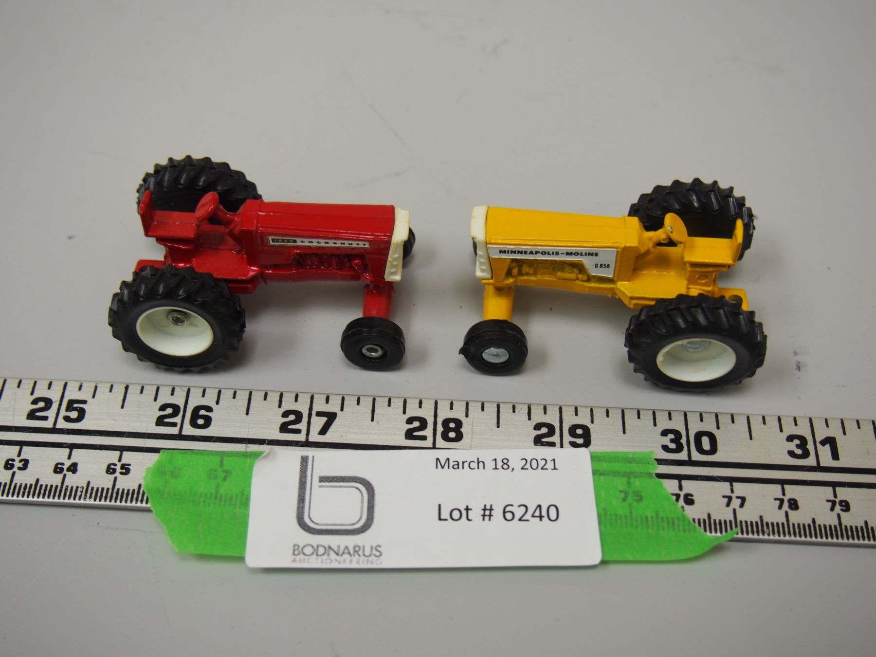 2X THE MONEY/ SMALL TOY TRACTORS MINN MOLINE 6850, 1855 COCKSHUTT (EACH 2 1/2 IN LONG)