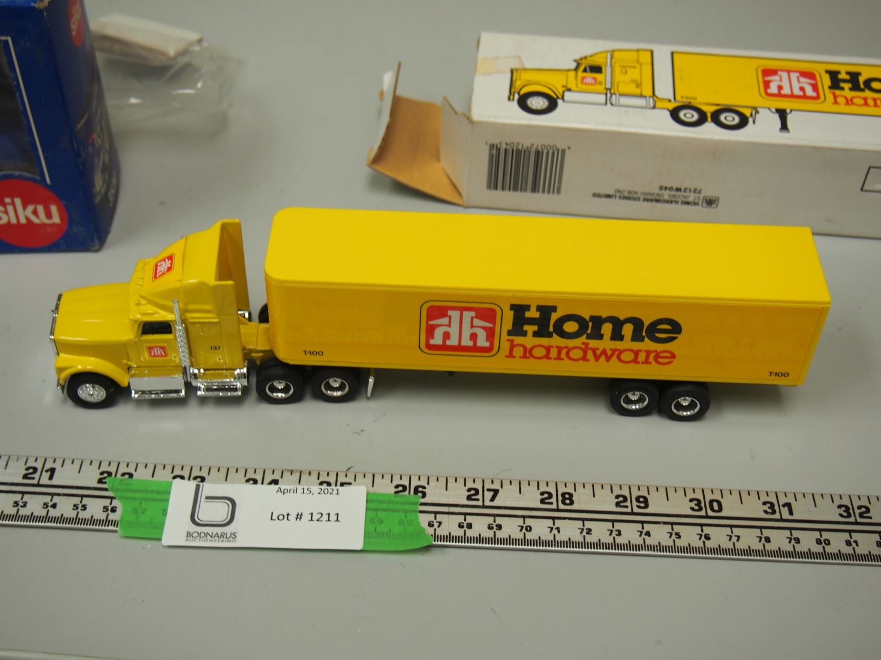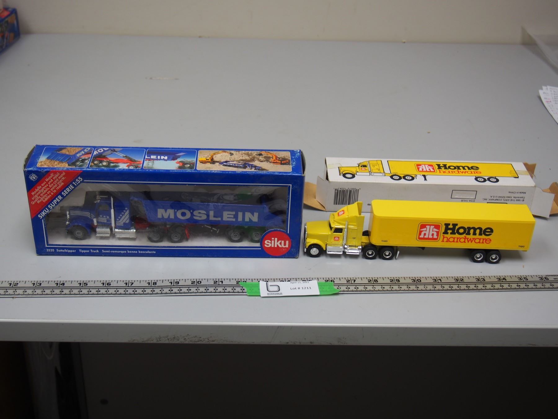 (2X THE MONEY) Siku Tipper Truck Semi + Trailer 1/55scale, Home Hardware International Truck Semi and Trailer. Both new in Box