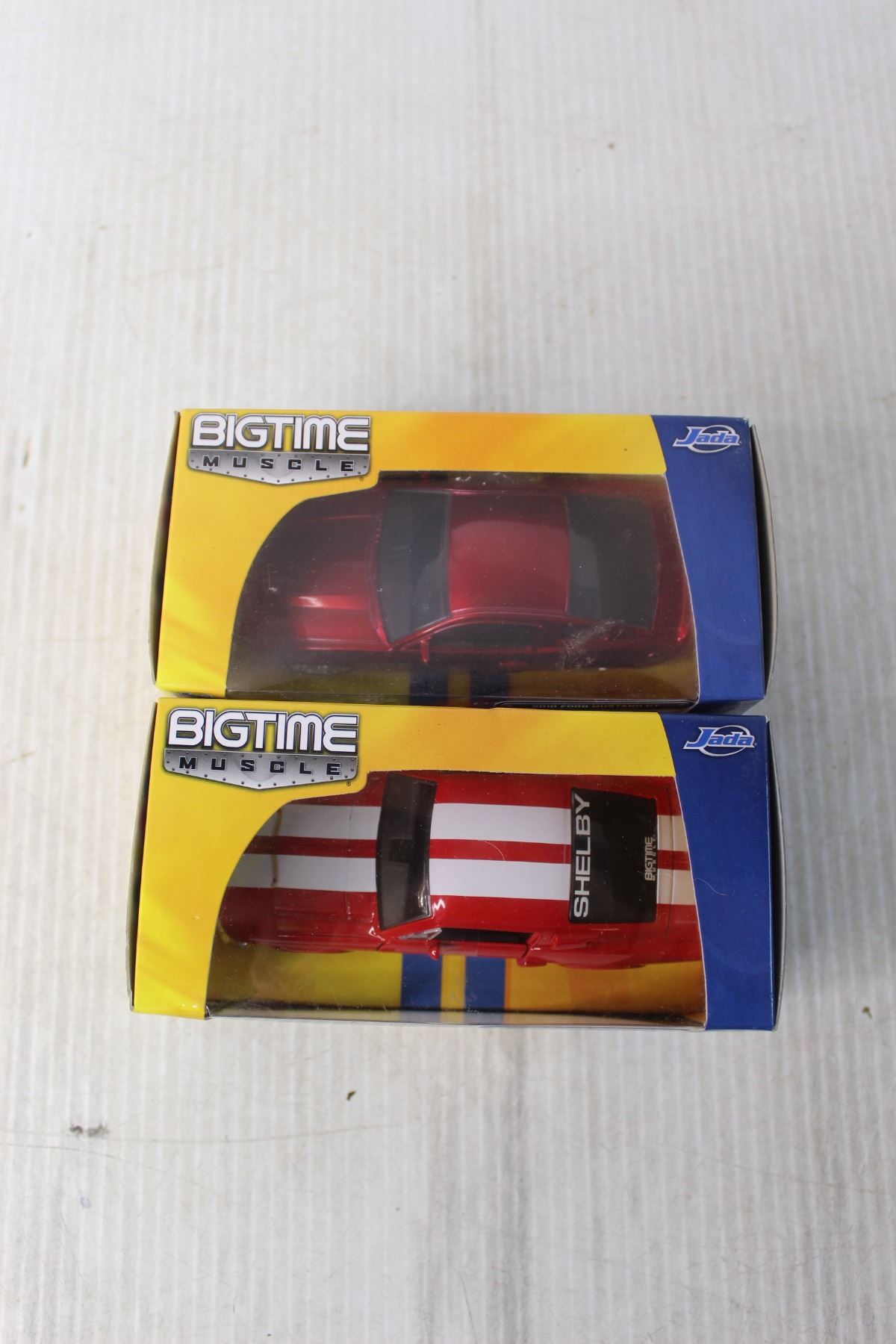 (2x Bid Price) (2) Bigtime Muscle Die Cast Modern Cars - Shelby GT-500, Ford Mustang GT (NIB)