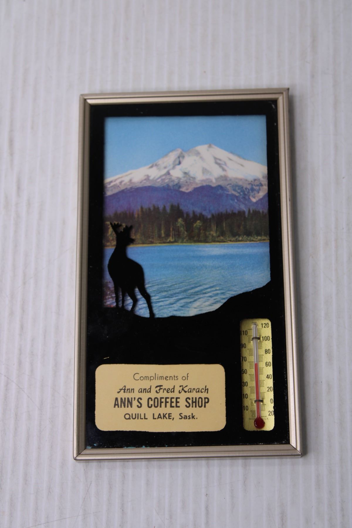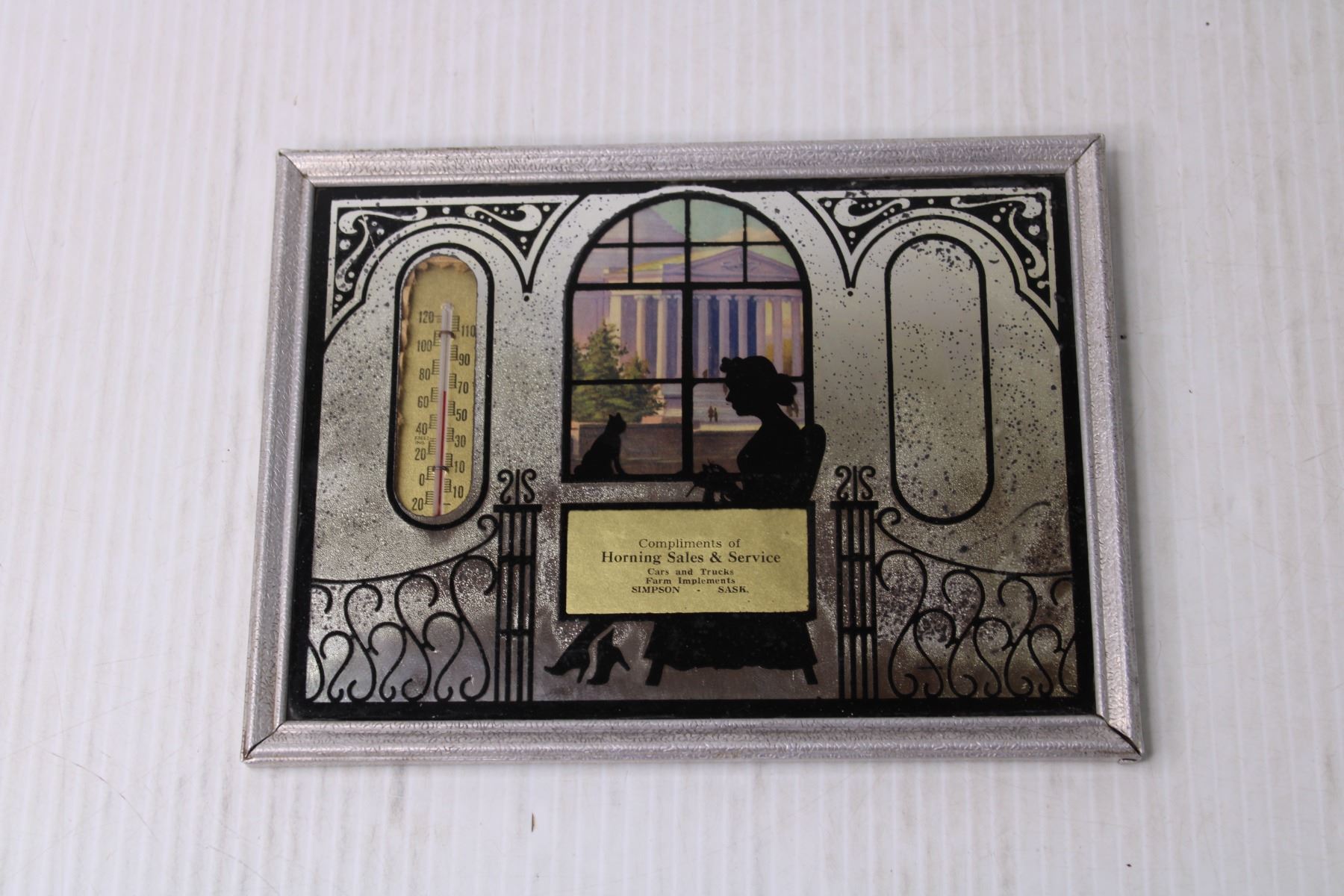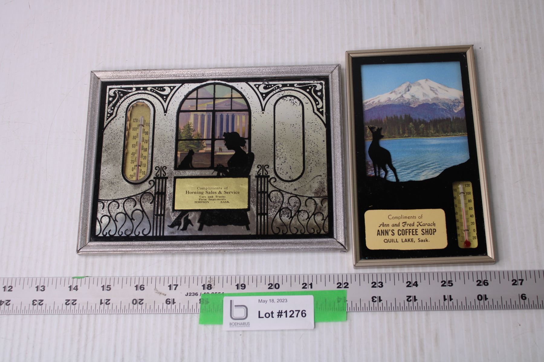 (2x Bid Price) (2) Mirror Silhouette Ad Pictures with Thermometers (Simpson and Quill Lake Saskatchewan)