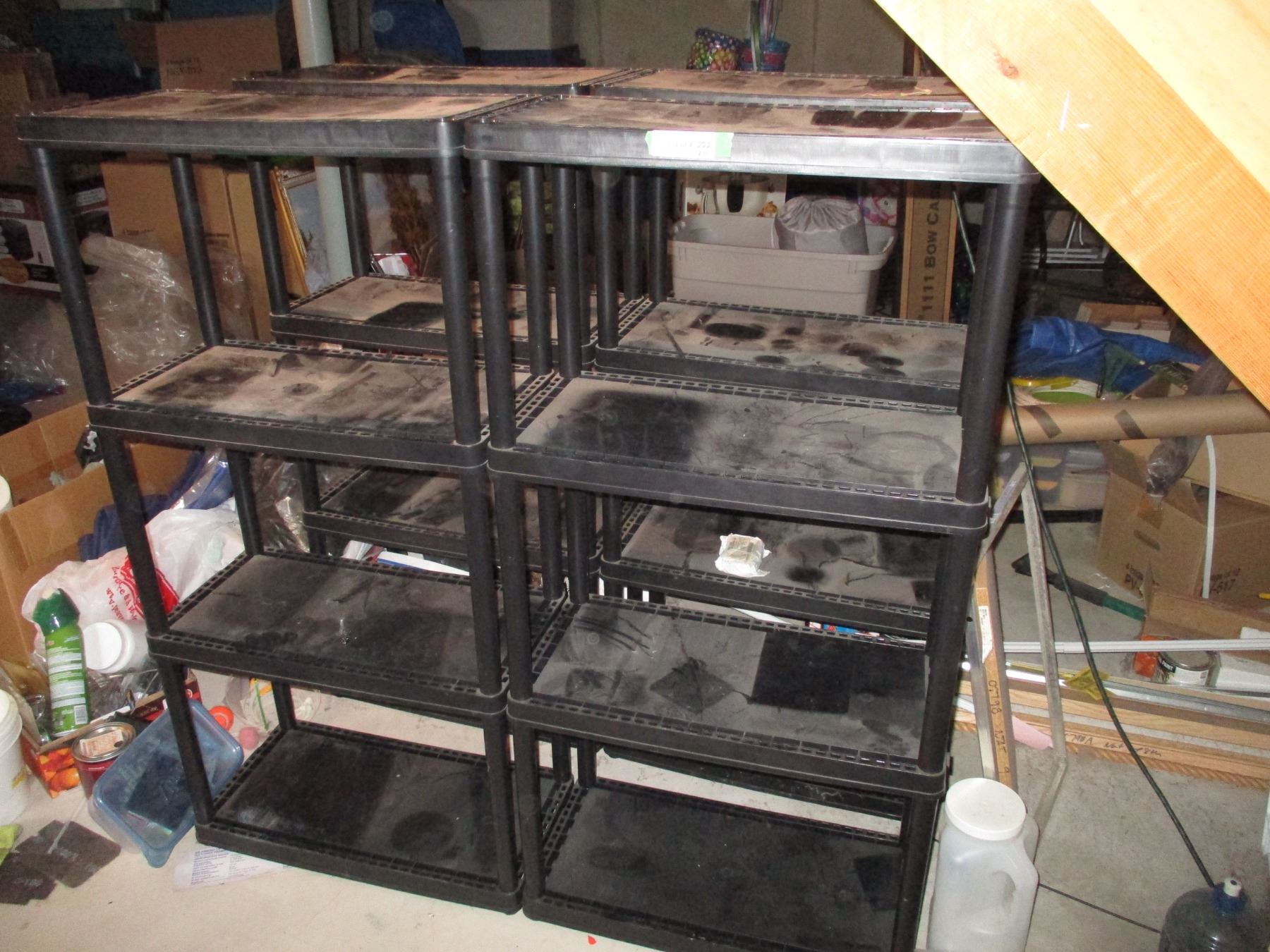 (2x Bid Price) (4) 4 Tier Plastic Shelf (2' Long x 4' Tall)