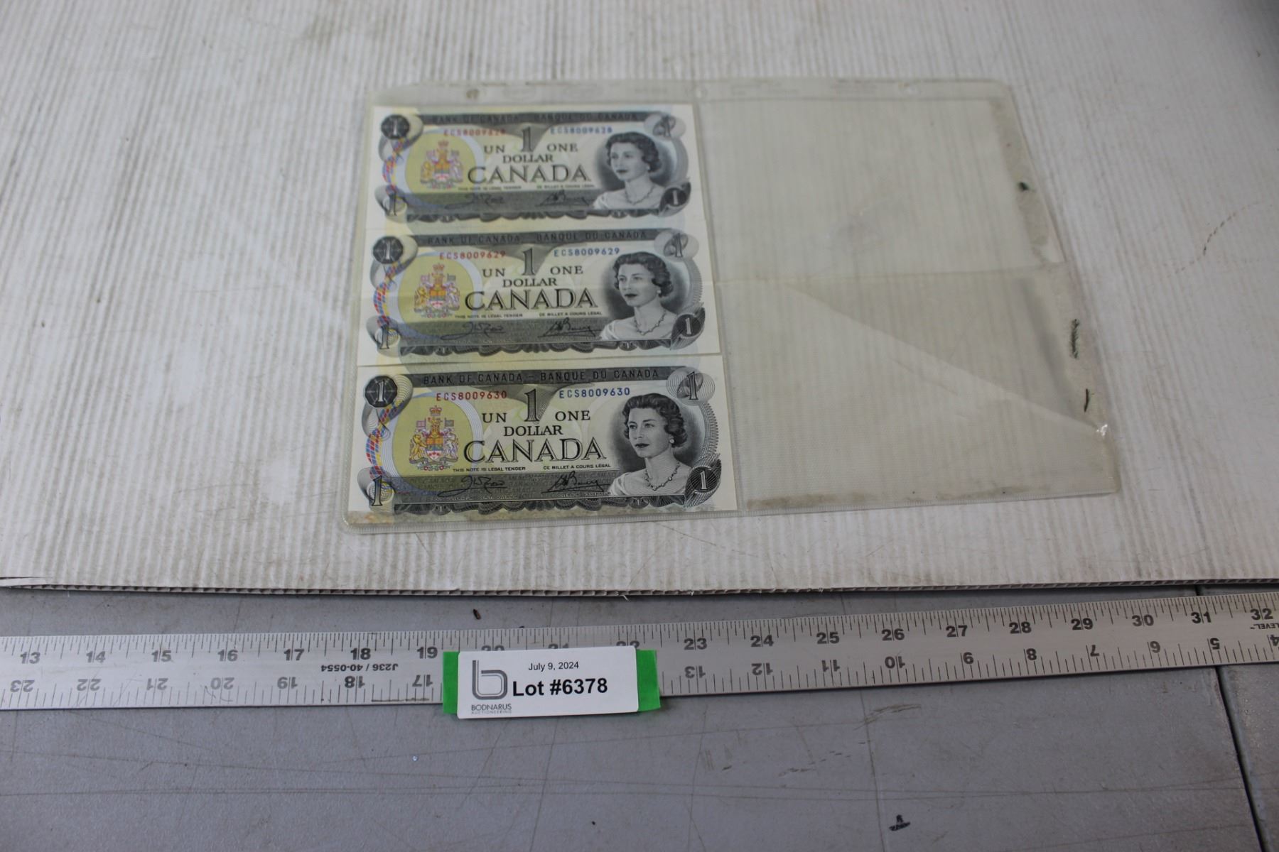 (3) $1.00 Canadian Bills in Sequence 8009628-9630