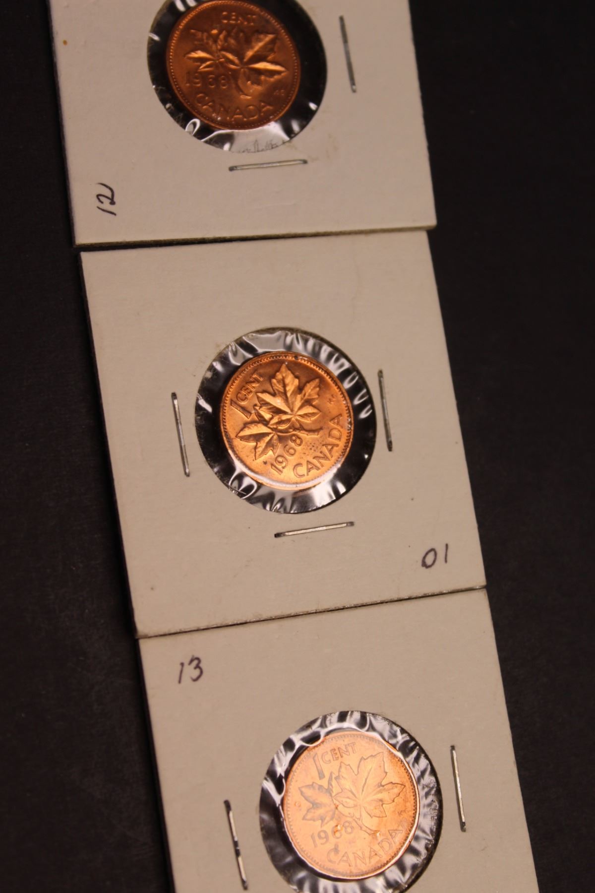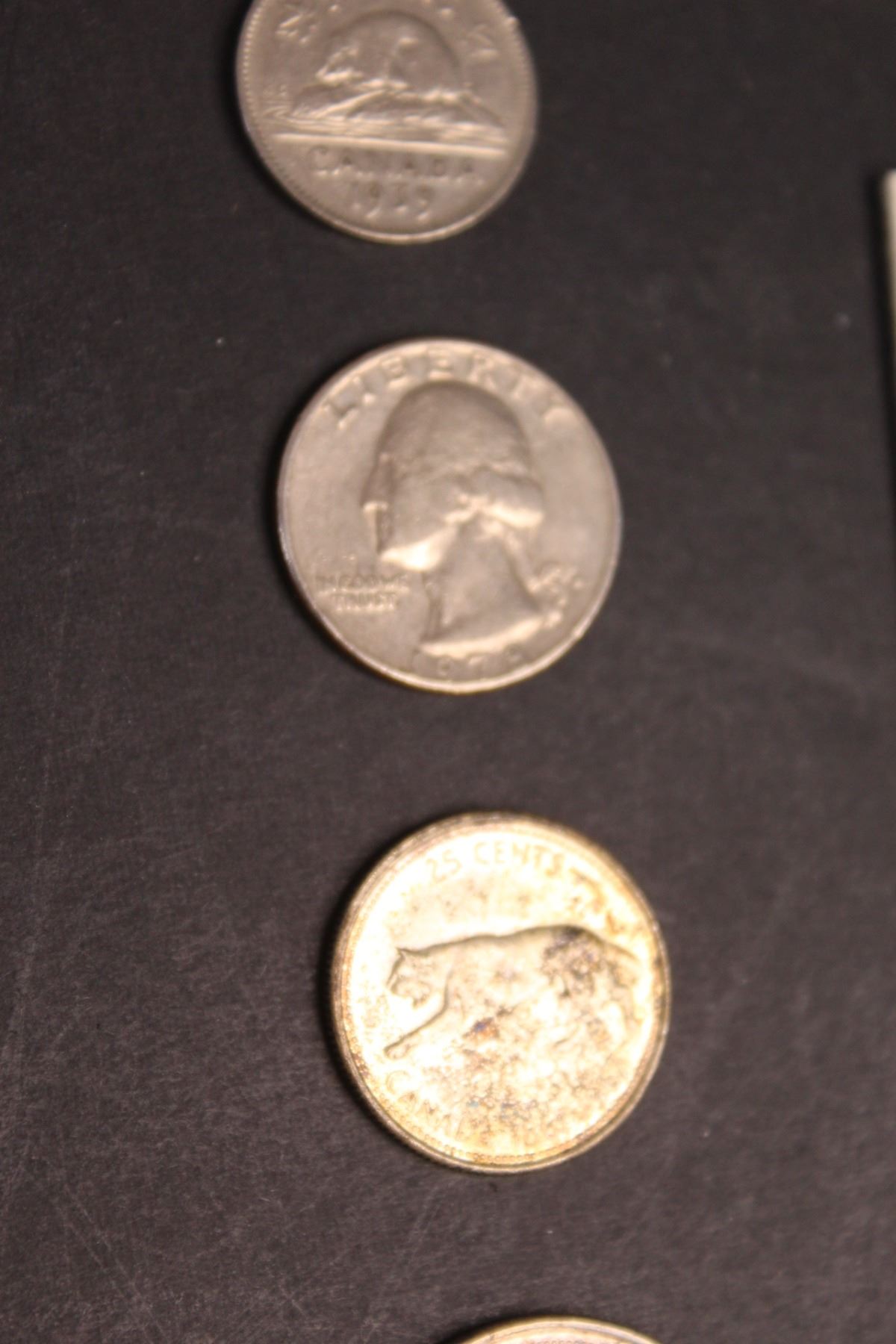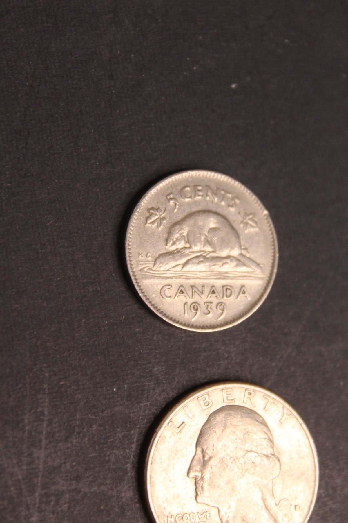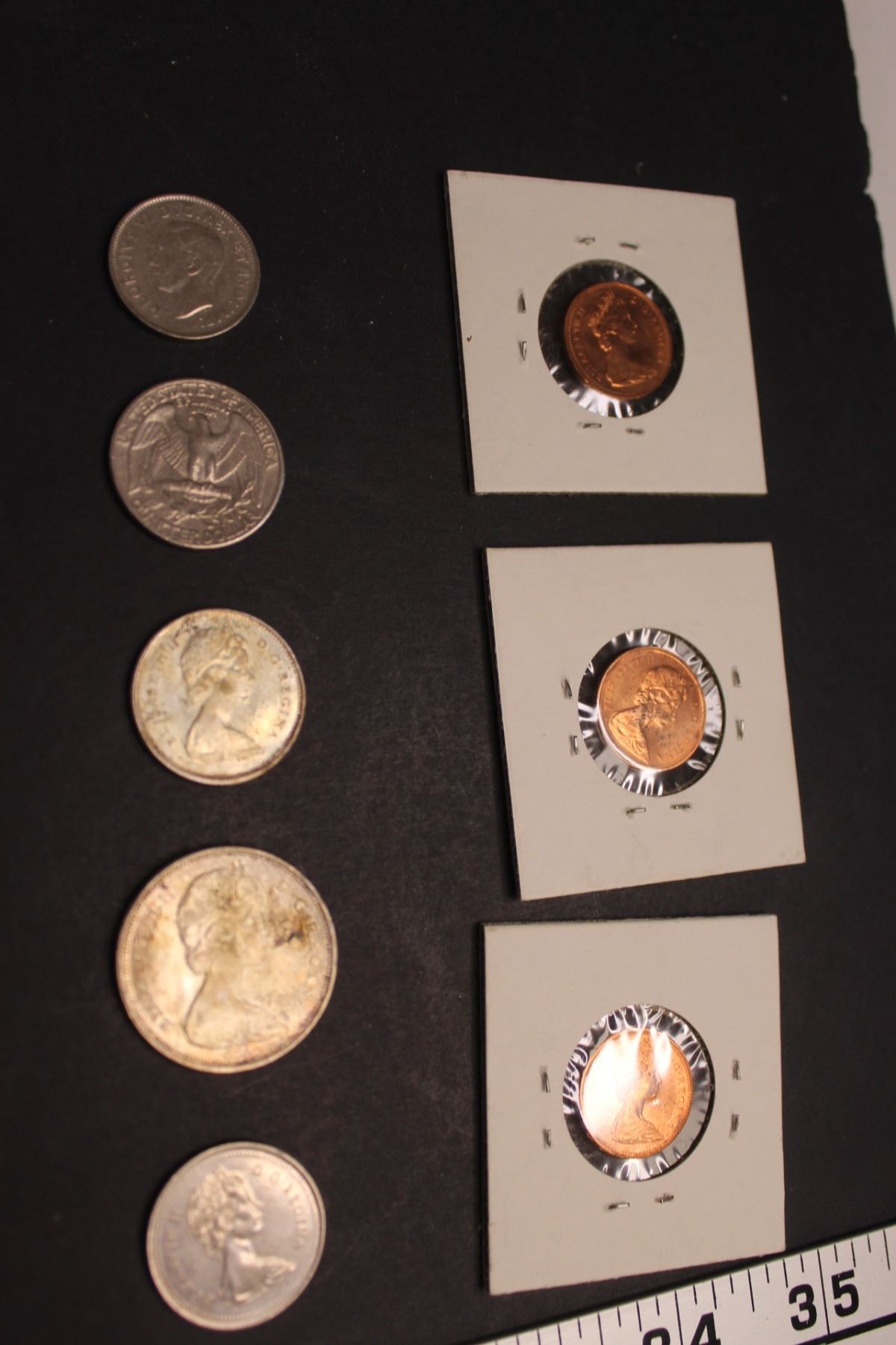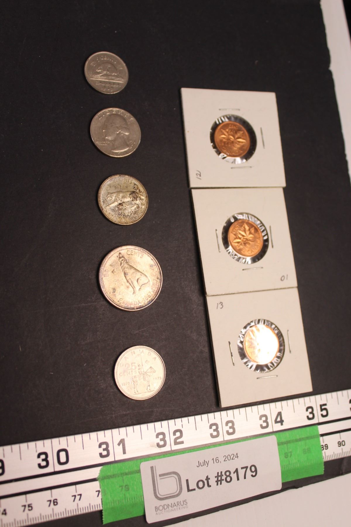 (3) 1968 Canadian Pennies, 1973 Canadian Quarter, 1939 Canadian Nickel, Various Coins