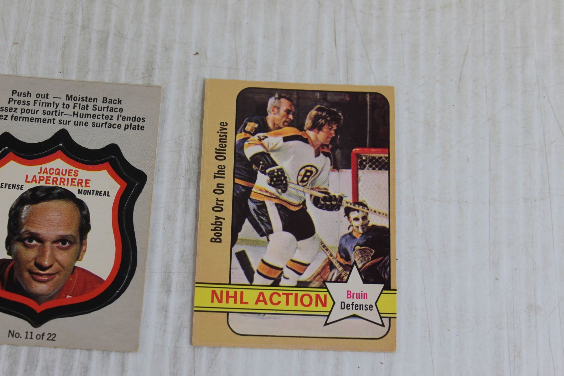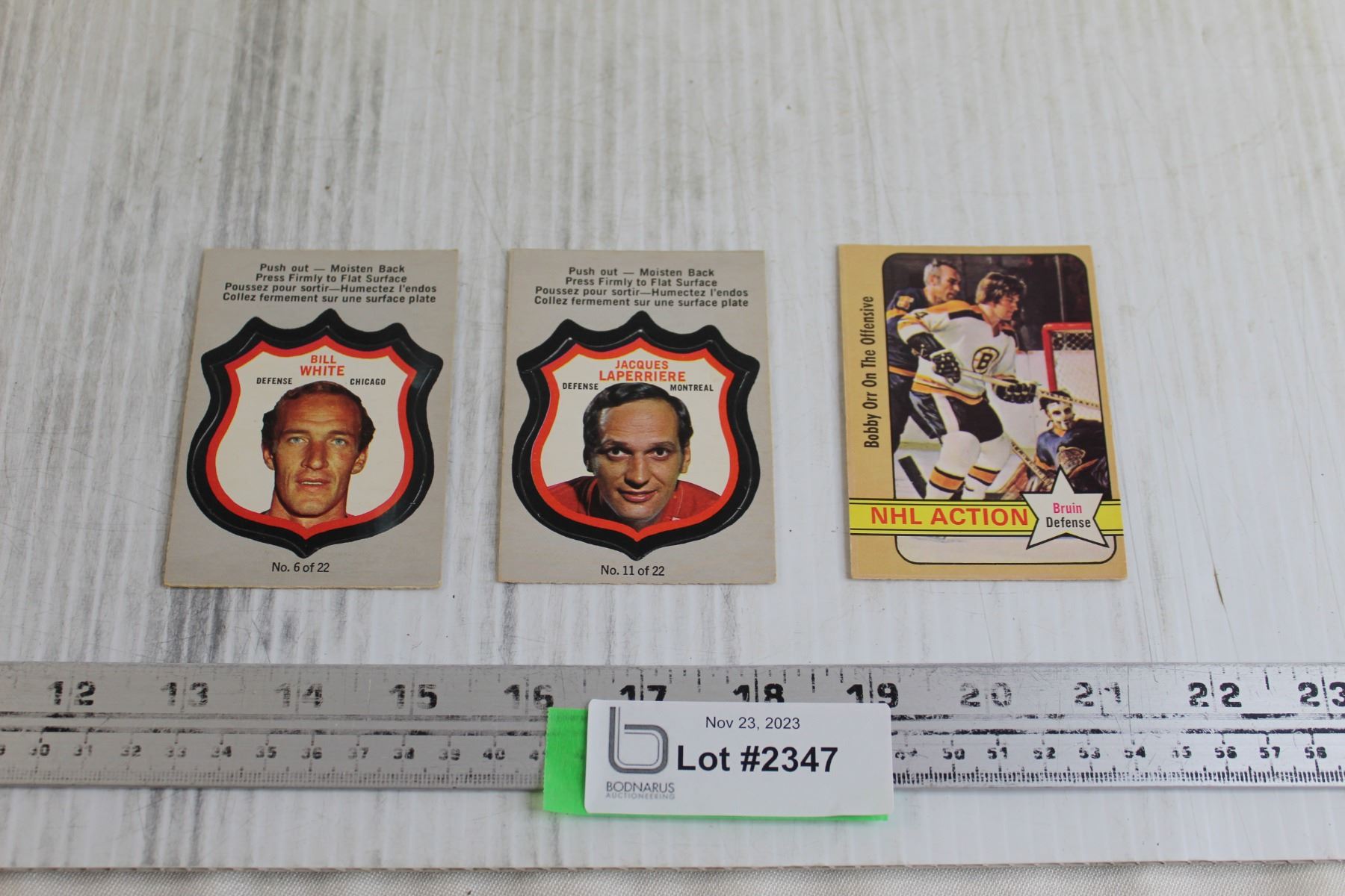 (3) 1972-73 OPC Hockey Cards - Bill White, Jacques Laperriere, Bobby Orr
