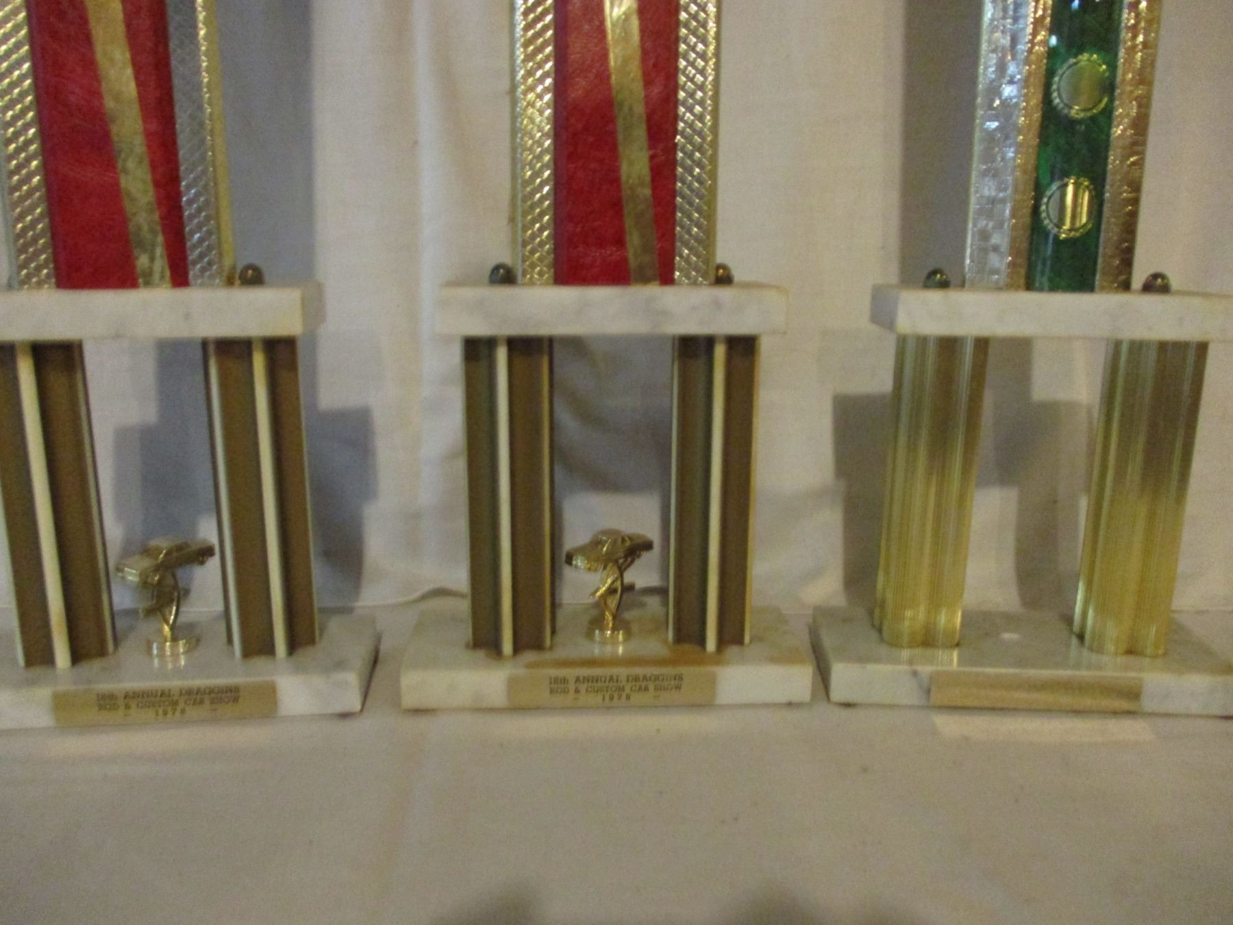 3 1978 and 1979 Dragging Car Show Trophies 32" T