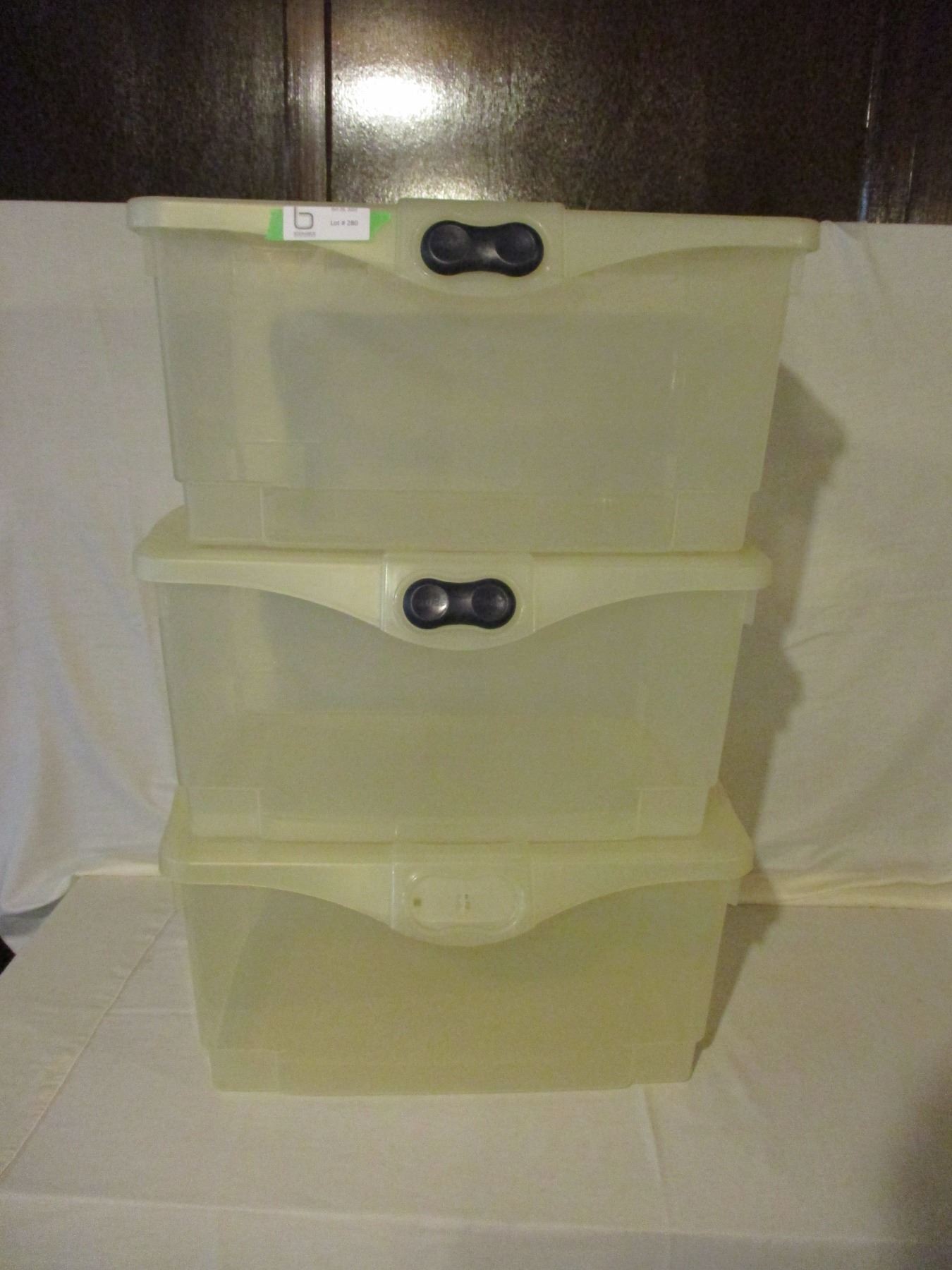 3 50Liter Rubber Maid Storage Bins with Lids