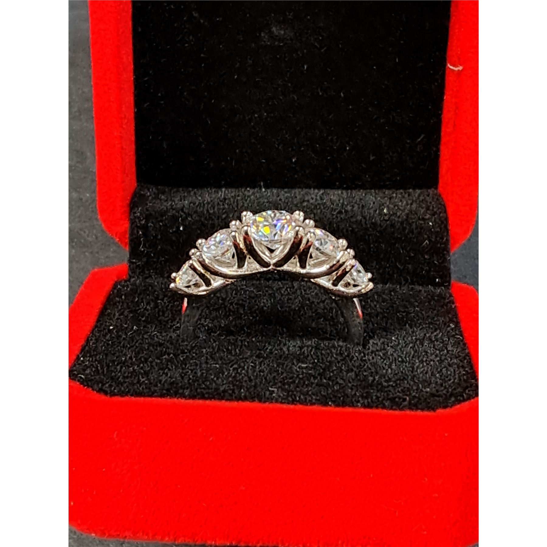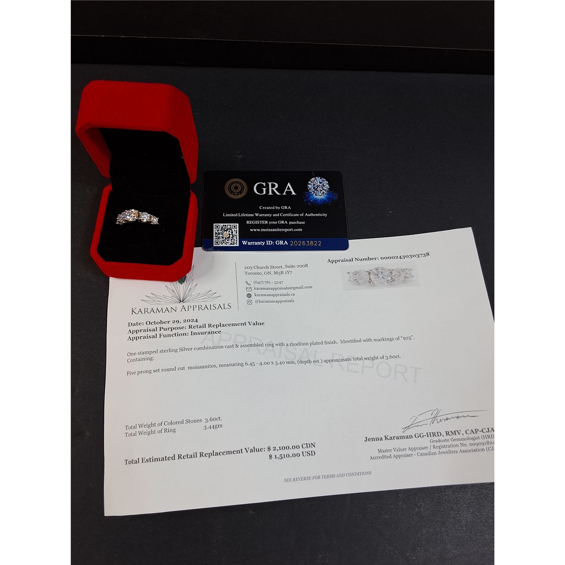 ^ 3.6 Ct GRA Certified Moissanite Stone w/5 Moissanite Stones Set in Sterling Silver Band - Size 7