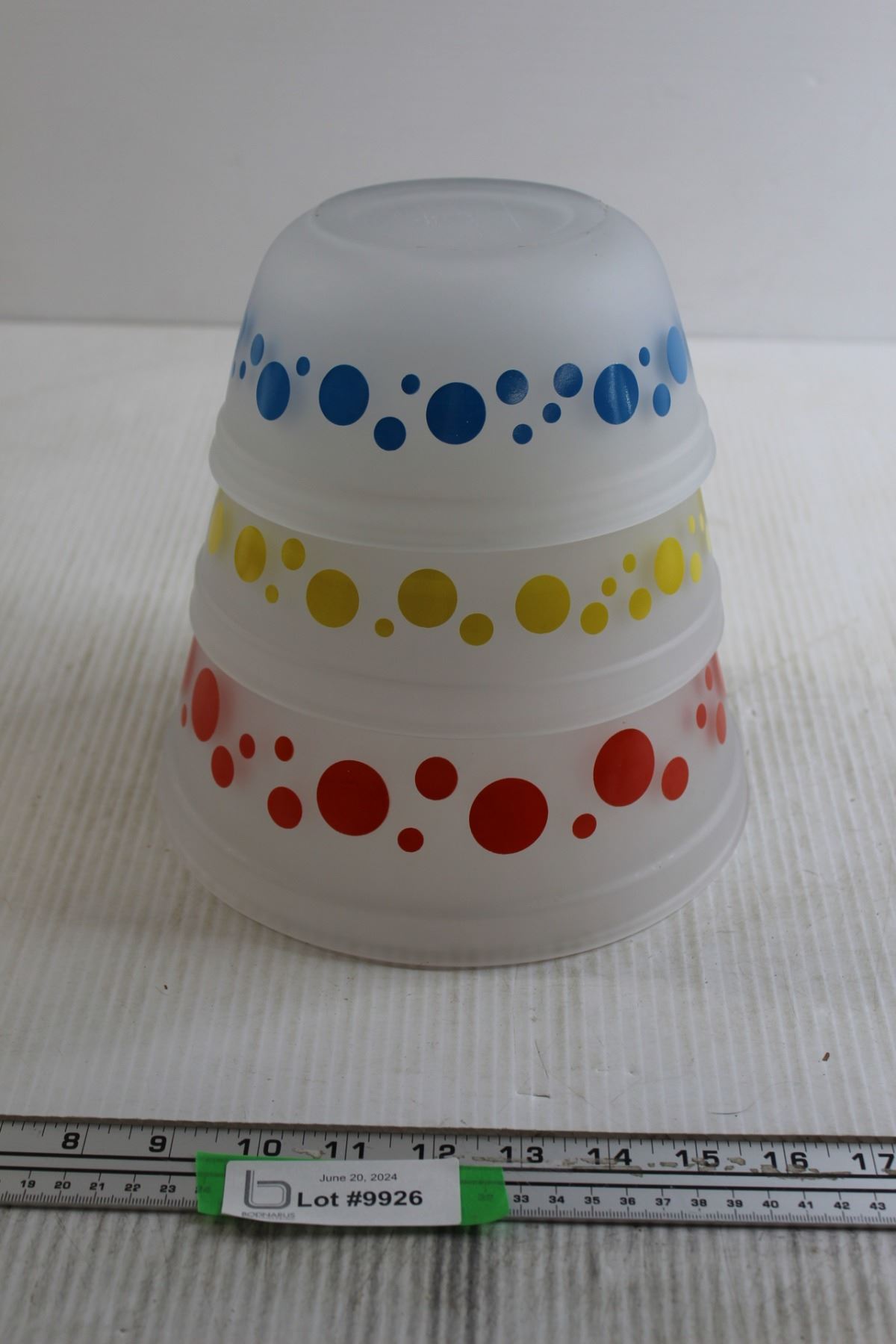 (3) Anchor Hocking Frosted Polka Dot Bowls