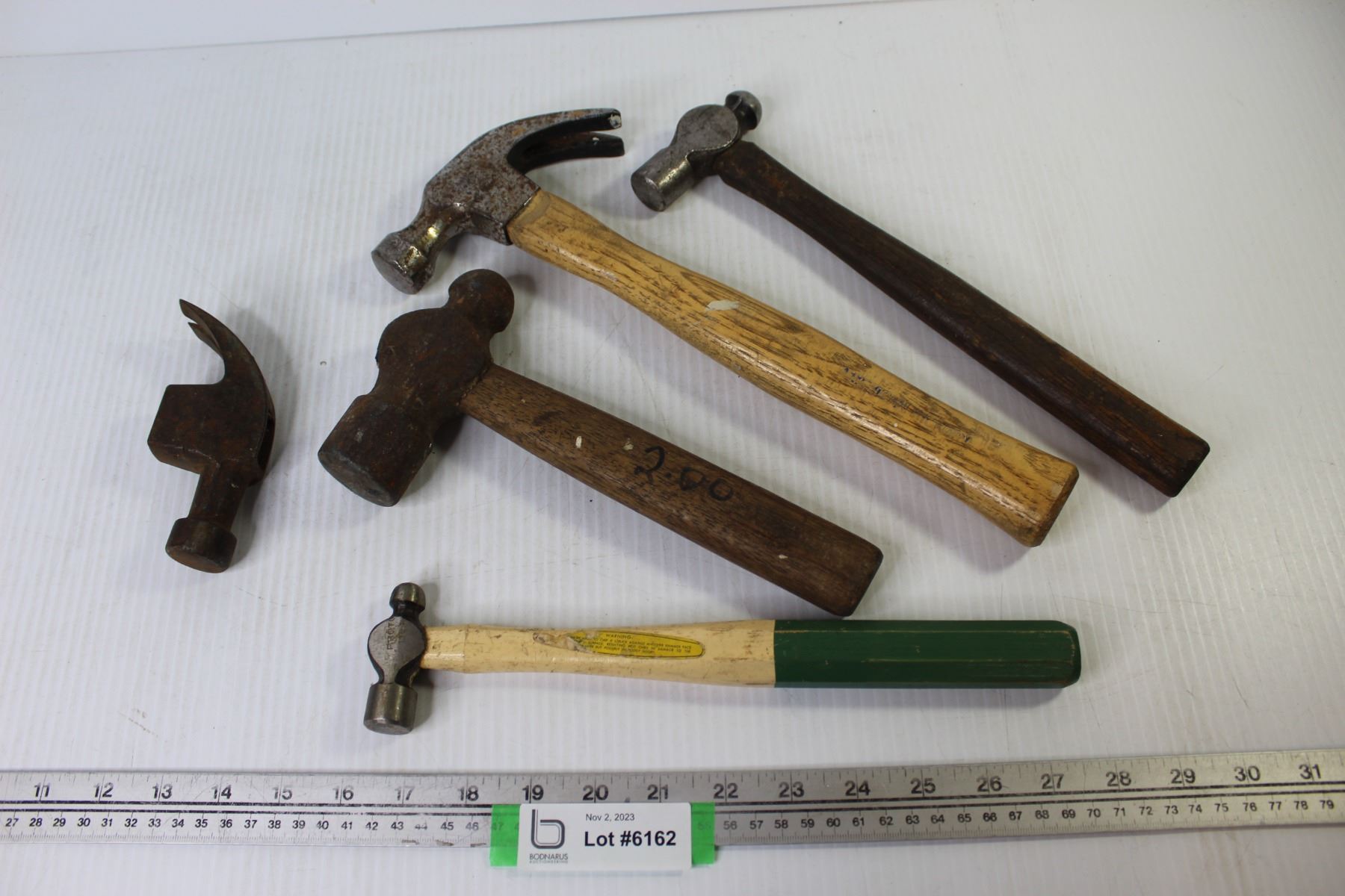 (3) Ball Peen Hammers - Wood Hammer w/Hammer Head