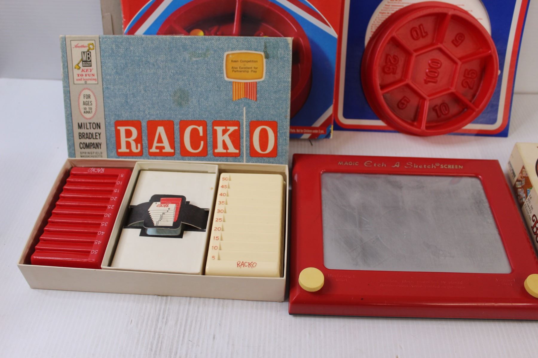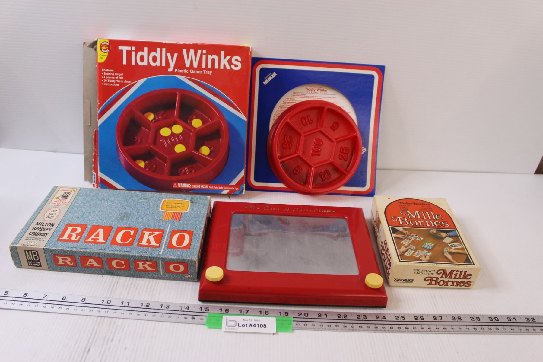 (3) Board Games: Racko, Mille Bornes, Tiddly Winks, Etch-a-Sketch - As is