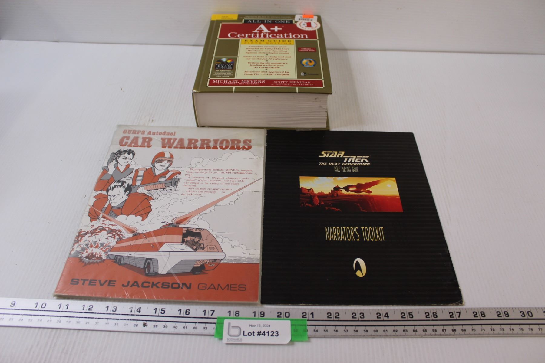 (3) Books: Star Trek Role Play, Exam Guide, GURP Car Warriors