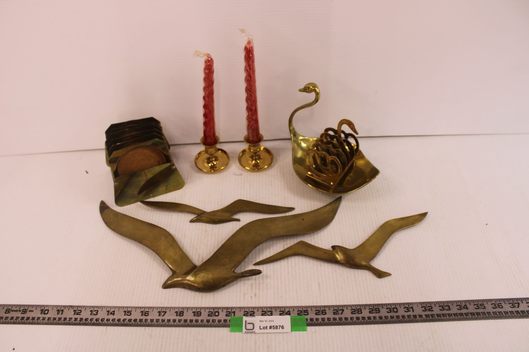 (3) Brass Seagulls, Brass Candle Holders + Assorted Vintage Brass