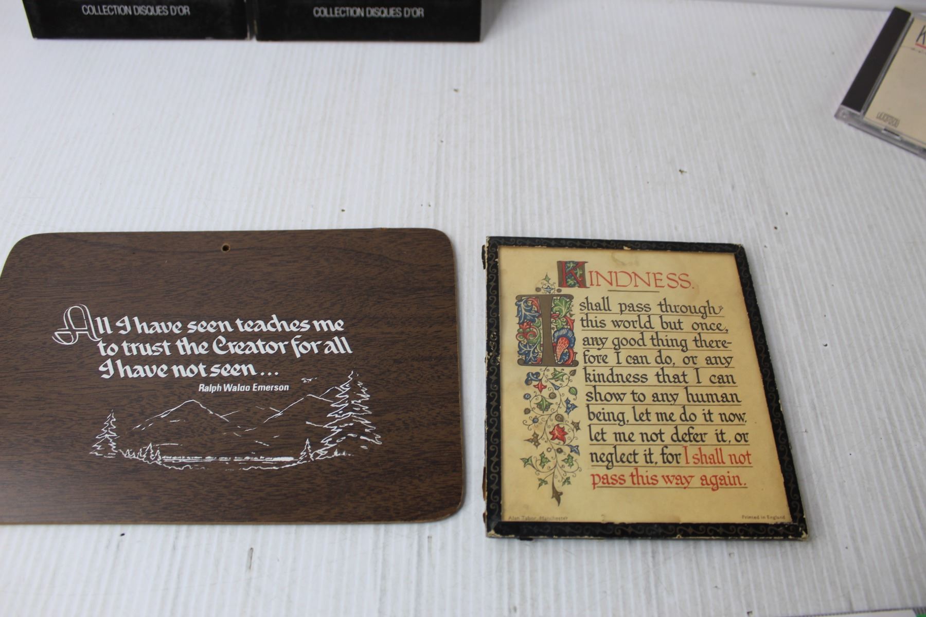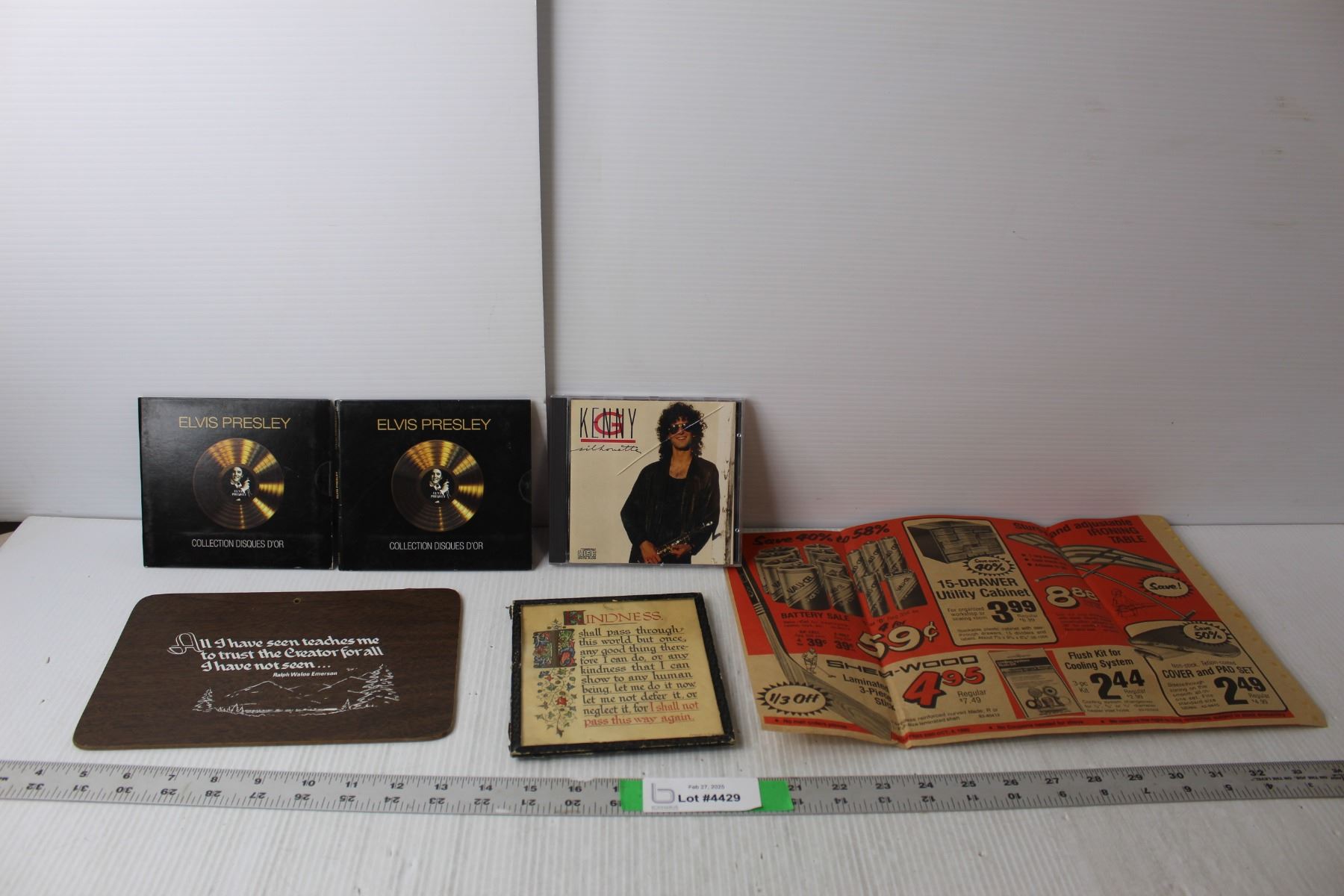 (3) CDs- Elvis, Kenny G., (2) Plaques, 1980s Flyer