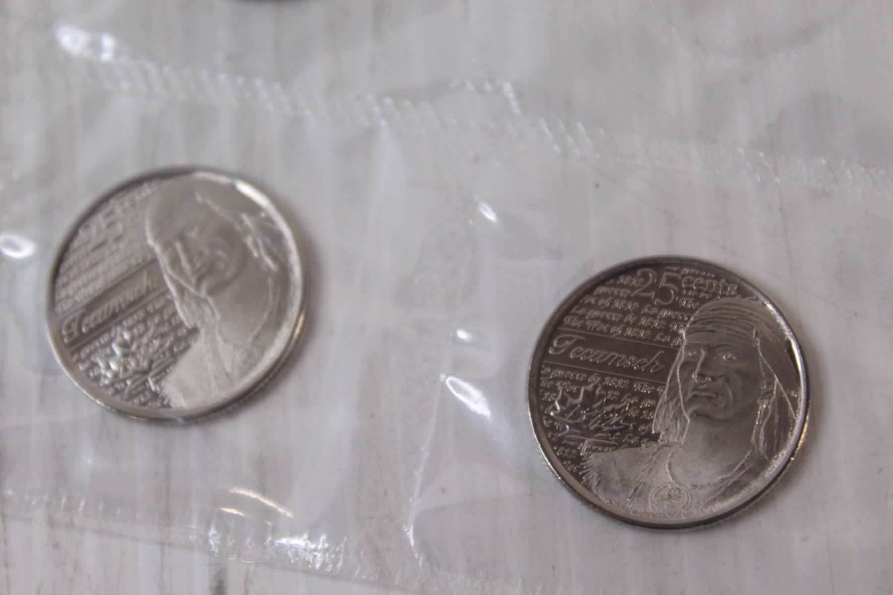 (3) Canadian 25 Cents Coins (5) Laura Secord - 2013, (5) Tecumseh - 2012 (5) Brock - 2012
