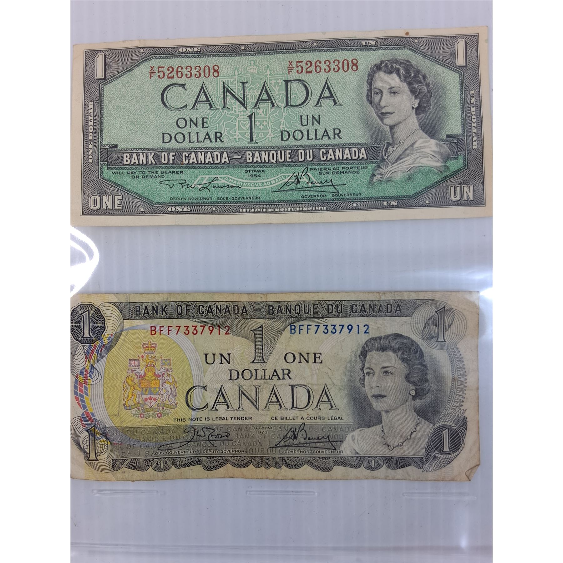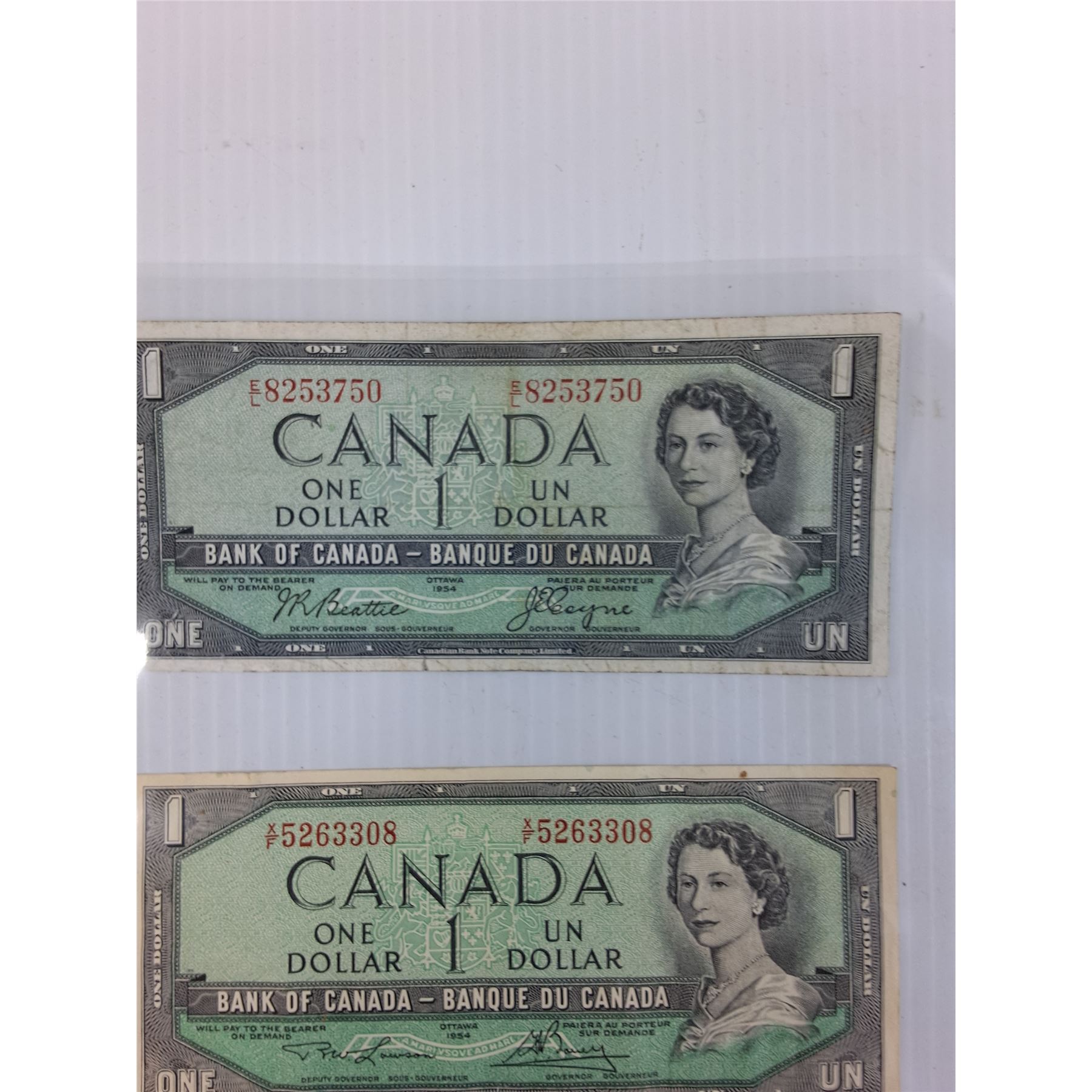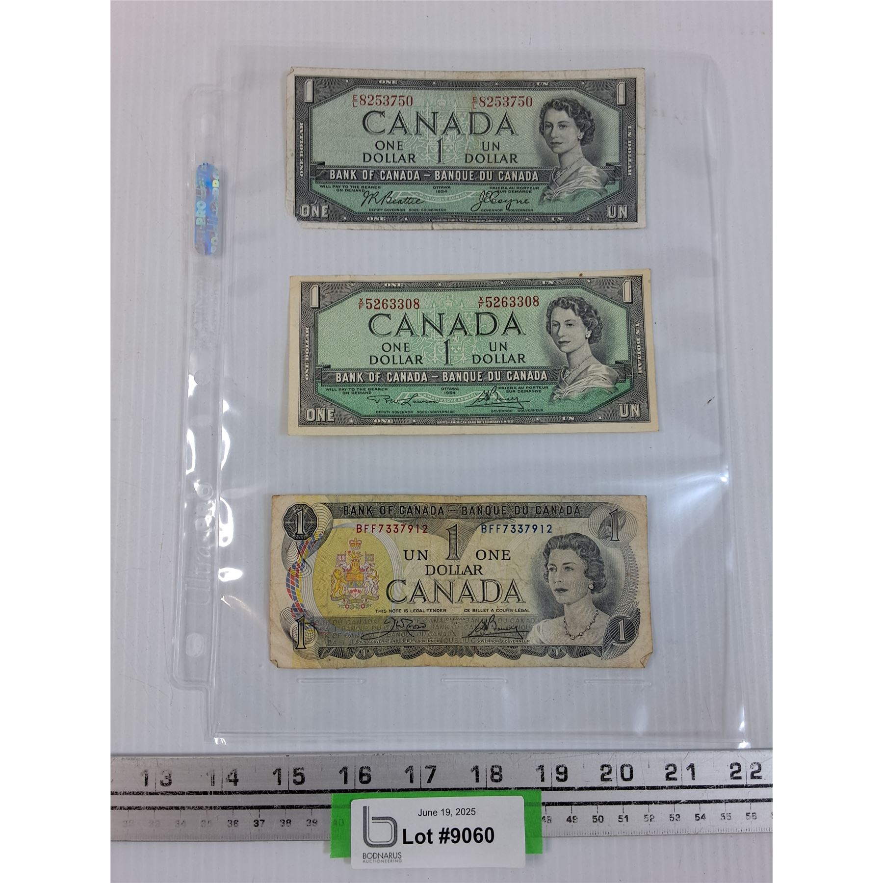 (3) Canadian One Dollar Bills: (1) 1973& (2) 1954