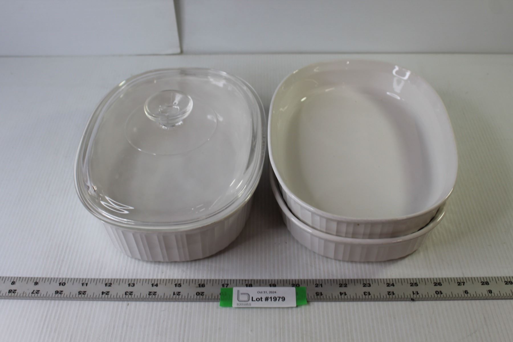 (3) Casserole Dishes With Single Lid - 11" x 8.75"