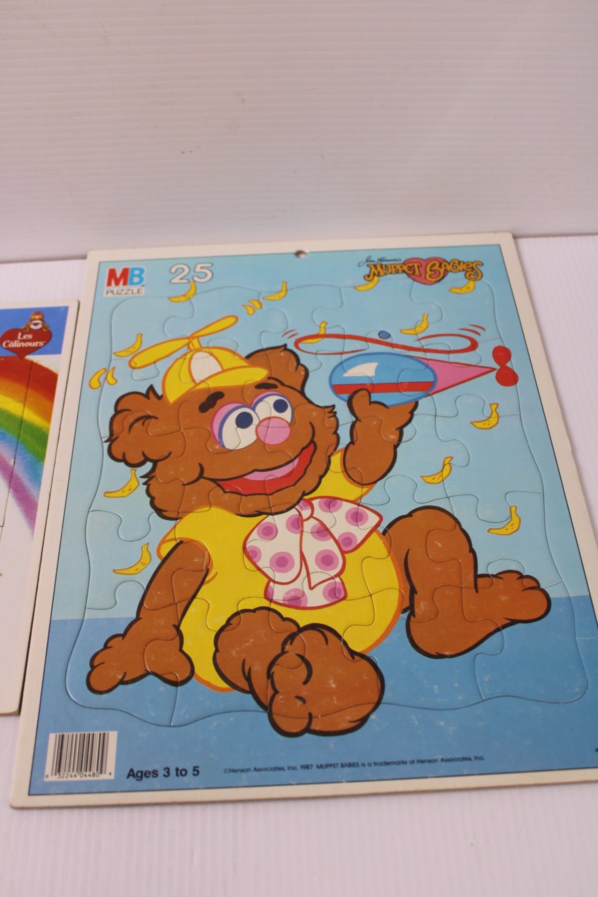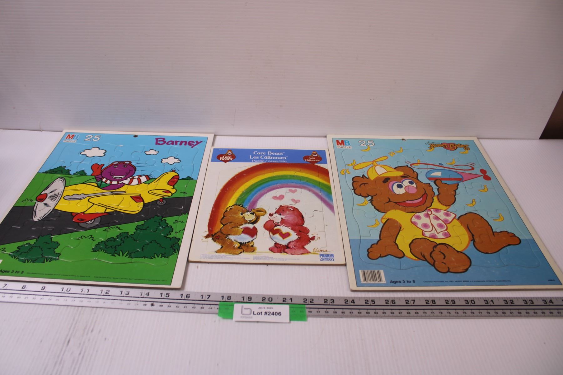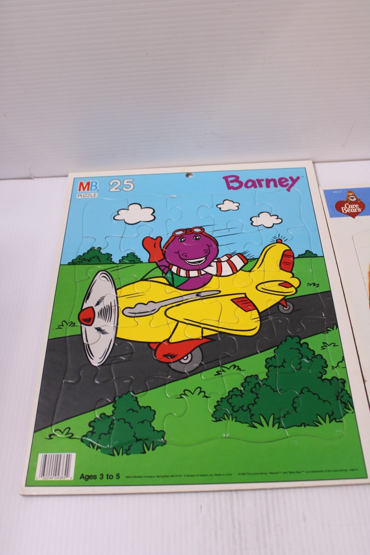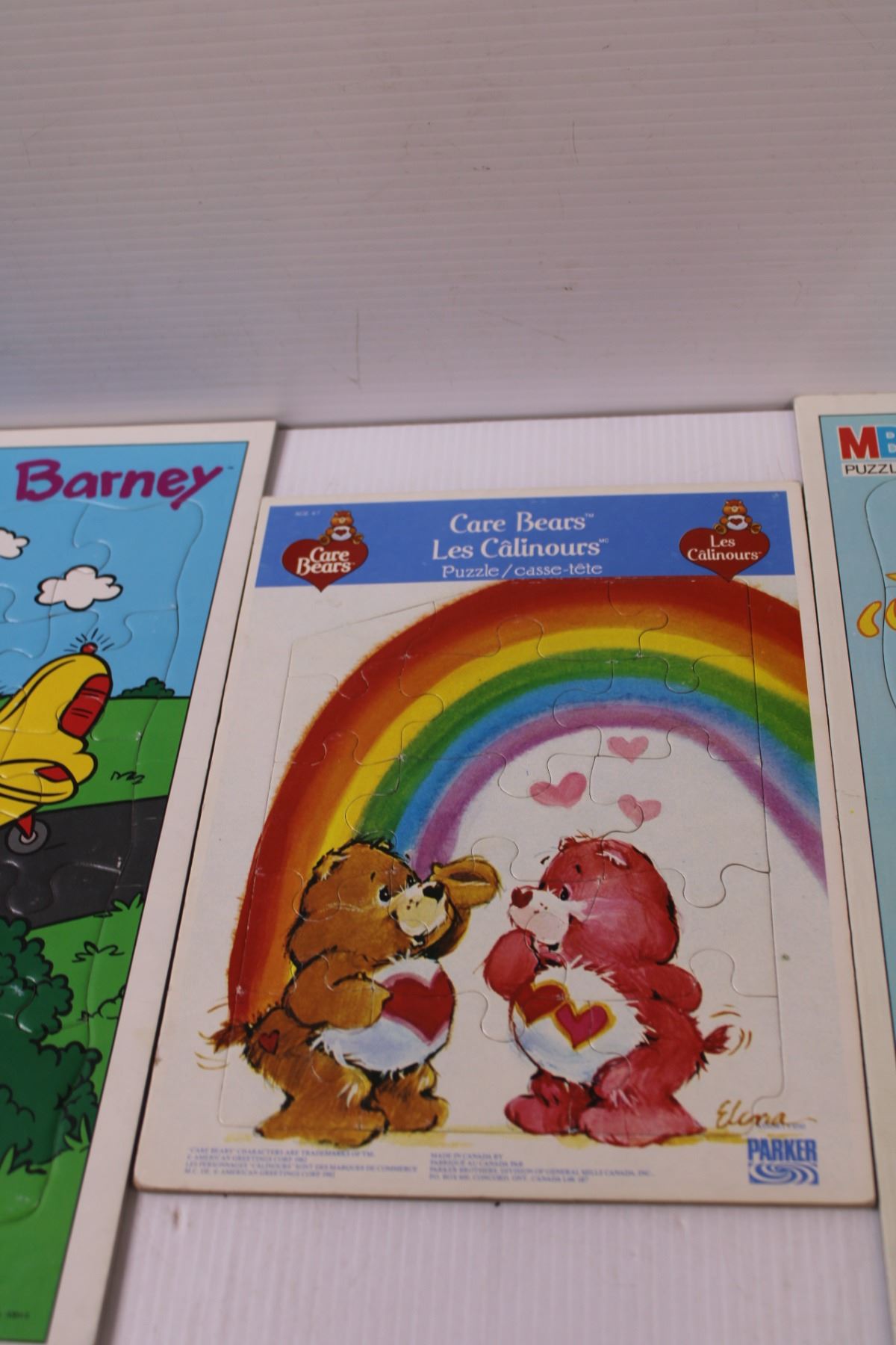 (3) Children's Board Puzzles: Care Bears, Barney, Muppet Babies