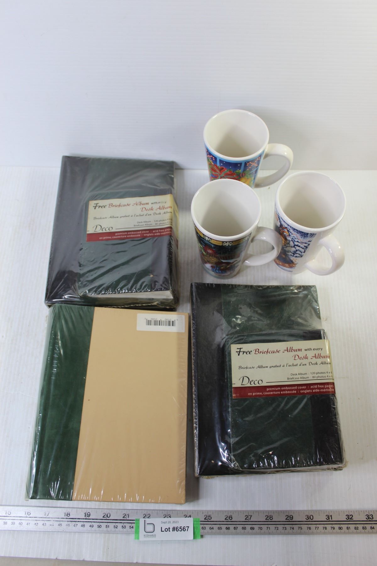 (3) Christmas Mugs + (3) Photo Albums (NIB)