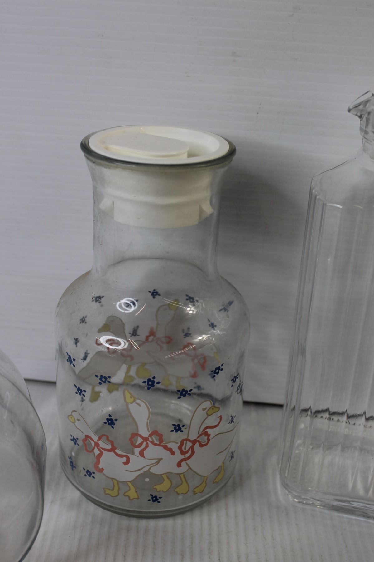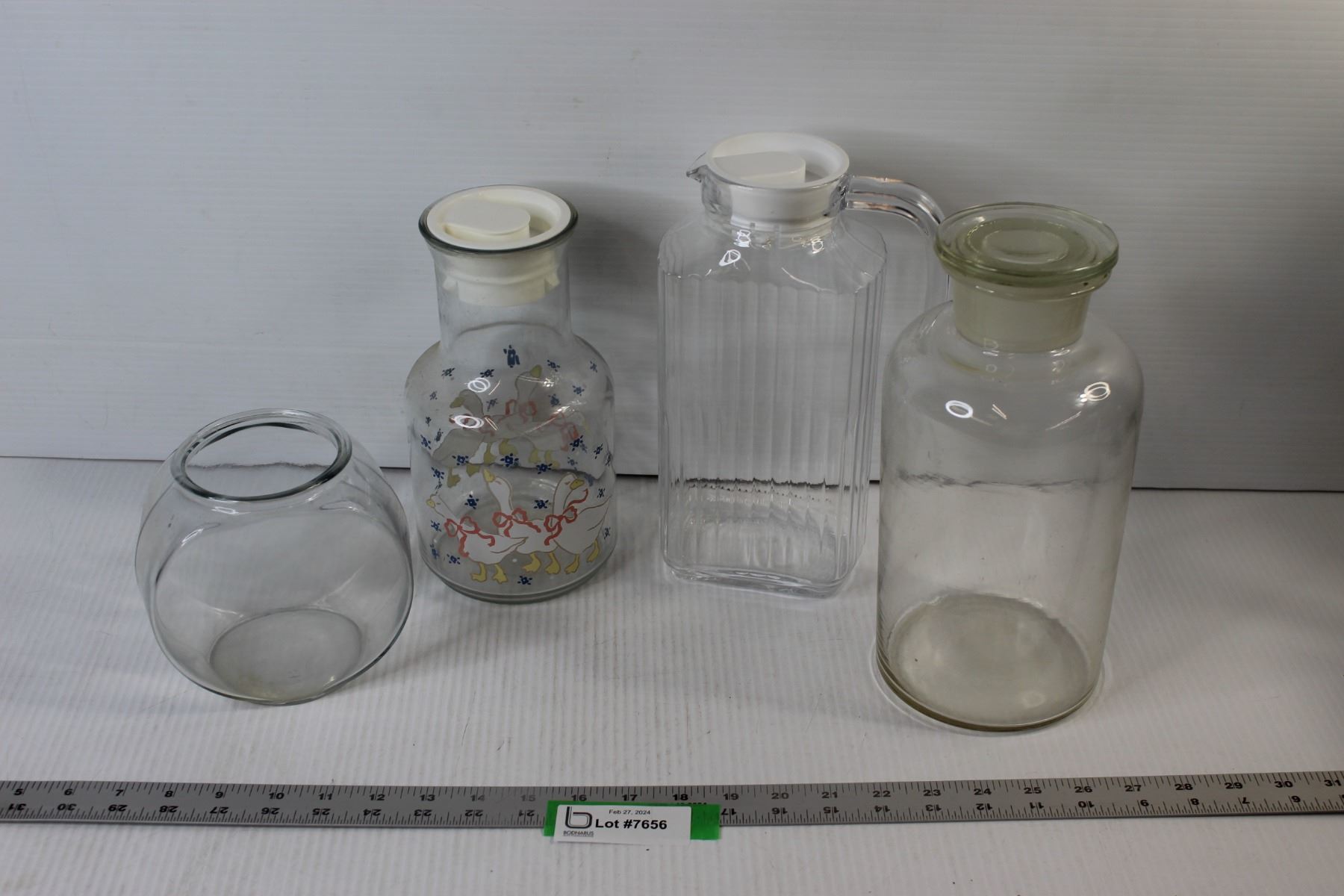 (3) Clear Glass Pitchers & Goldfish Bowl