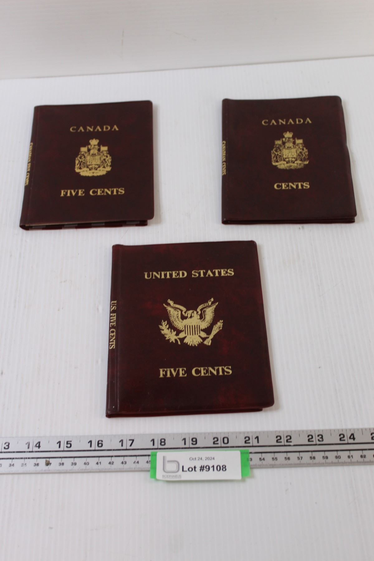 (3) Coin Collector Booklets w/ Various Year Canadian Coins - 1922-1979 5 Cent & 1940-2004 1 Cent