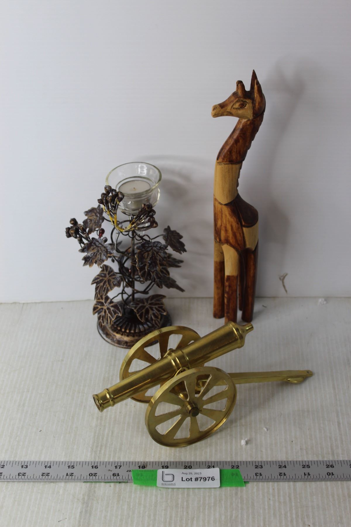 (3) Décor Items -- Cannon, Candle Holder, Misc.
