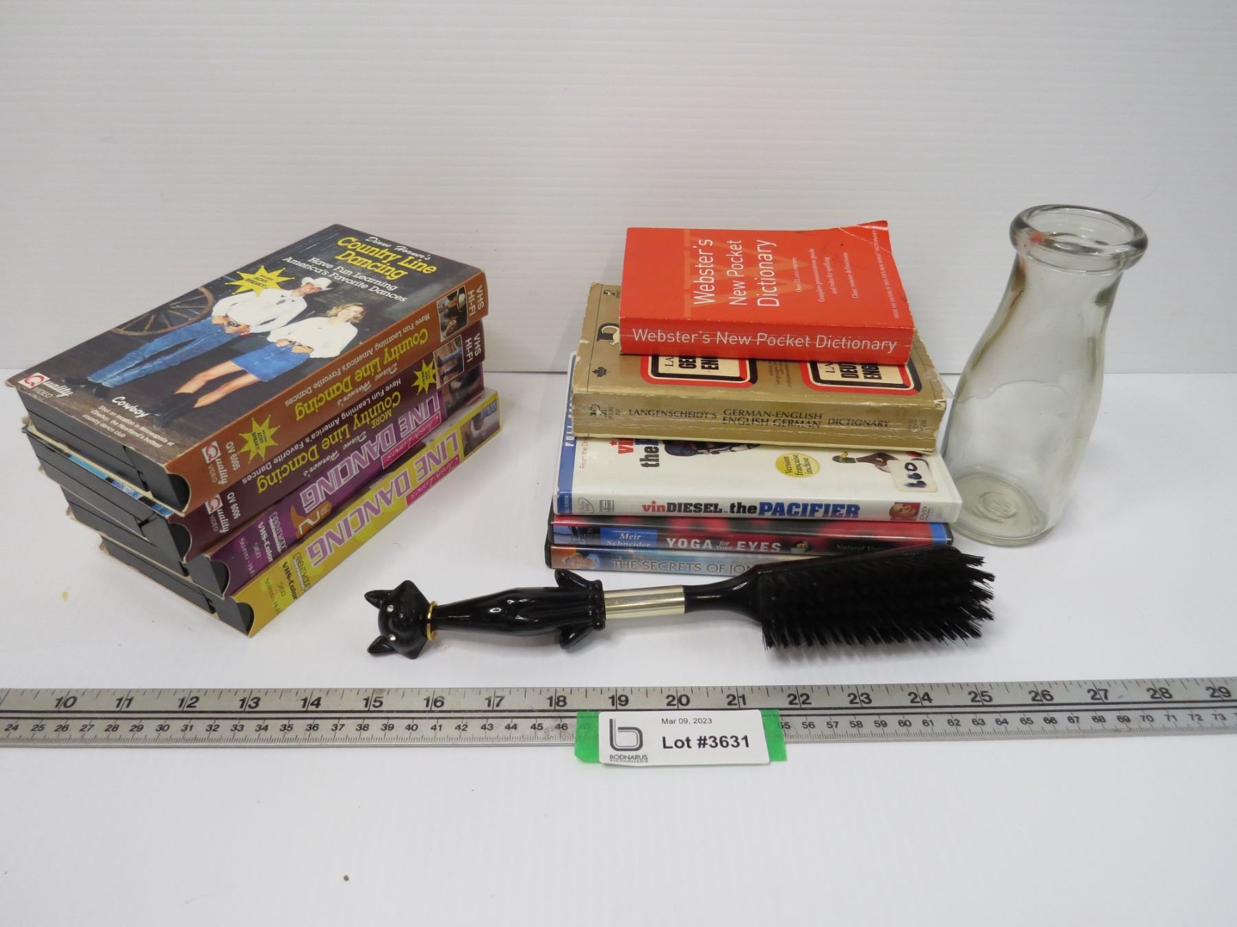 (3) DVD - (2) Books - (4) Line Dancing VHS Tapes Black Cat Brush - Small Bottle